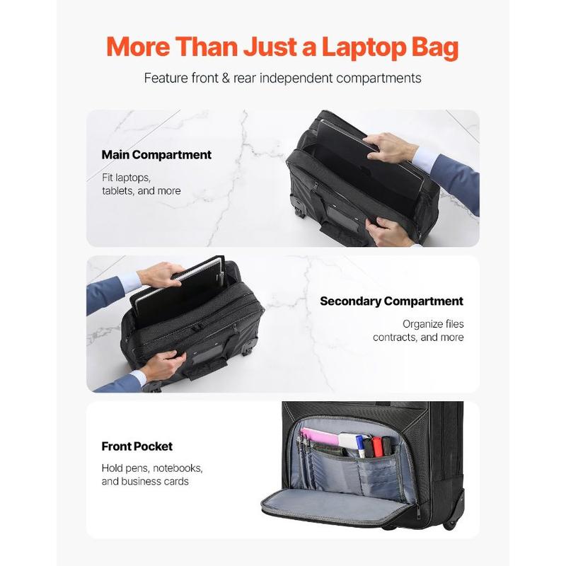 VEVOR Rolling Laptop Bag, Fits Up to 17.3 Inch Laptop, Wheeled Briefcase, Roller Computer Tote Bag with 2 Fixed Wheels Telescoping Handle, Laptop Case for Work Travel Business Office, RedVEVOR Rolling Laptop Bag, Fits Up to 15.6 Inch Laptop, Wheeled Briefcase, Roller Computer Tote Bag with Wheels & Telescoping Handle, Laptop Case for Work Travel Business Office, Women & Men (Black) Travel Smart Device Protection Improved Mobility Rain Shield Carry-On Friendly Enhanced