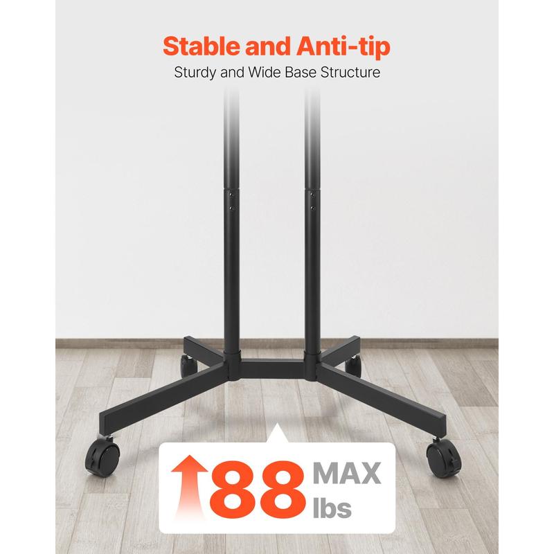 • Stability and Security: Our moving TV stand offers exceptional stability, supporting up to 88 lbs to prevent tipping. The adjustable tilt design also allows you to customize the viewing angle according to your preferences, ensuring the ideal experience every time you watch.