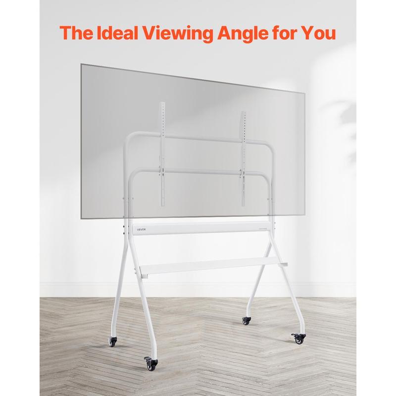 • Stability and Security: Our moving TV stand offers exceptional stability, supporting up to 198 lbs to prevent tipping. The adjustable tilt design also allows you to customize the viewing angle according to your preferences, ensuring the ideal experience every time you watch.