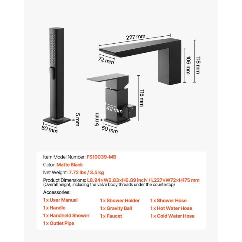 VEVOR Roman Tub Faucet, 3 Hole Waterfall Bathtub Faucet, Widespread Roman Tub Faucets with Shower Head 1 Handle, Romans Bathtub Faucets for Pet Washing, Adult Bathing, Matte Black, Dual Water FlowVEVOR Roman Tub Faucet, 3 Hole Waterfall Bathtub Faucet, Roman Bathtub Faucets Set with Shower Head & 1 Handle, Romans Bathtub Faucets for Pet Washing, Adult Bathing, Matte Black, Stainless Steel Quick Fill with Waterfall Spout Low-Noise Flow with Anti-Splashing Built for Modern Family