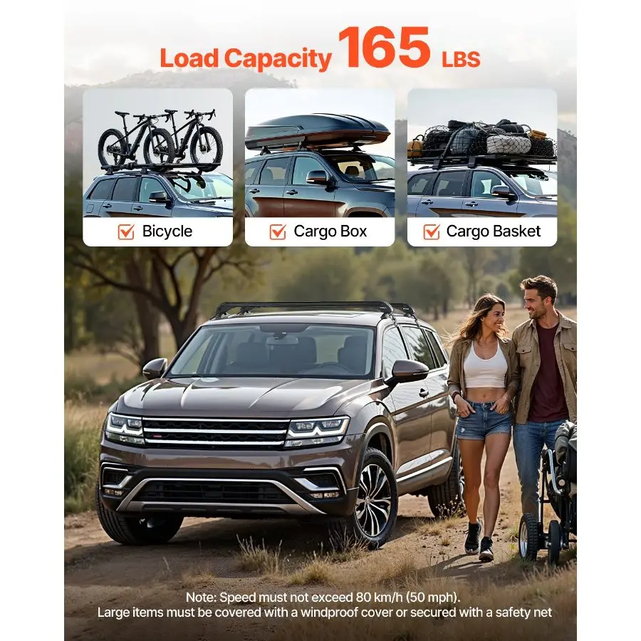 VEVOR Roof Rack Cross Bars, Universal Fit for Naked Roofs Without Raised Rails/Flush Rail/Black Moldings, 165 LBS Capacity, Lockable Heavy Duty Aluminum Crossbar Racks Roof Rail Rooftop Luggage CanoeVEVOR Roof Rack Cross Bars, Universal Fit for Naked Roofs Without Raised Rails/Flush Rail/Black Moldings, 165 LBS Capacity, Lockable Heavy Duty Aluminum Crossbar Racks Roof Rail Rooftop Luggage Canoe Premium Mounting Bracket Robust Aluminum Tubing Secure & Stable Fixation Strong Load