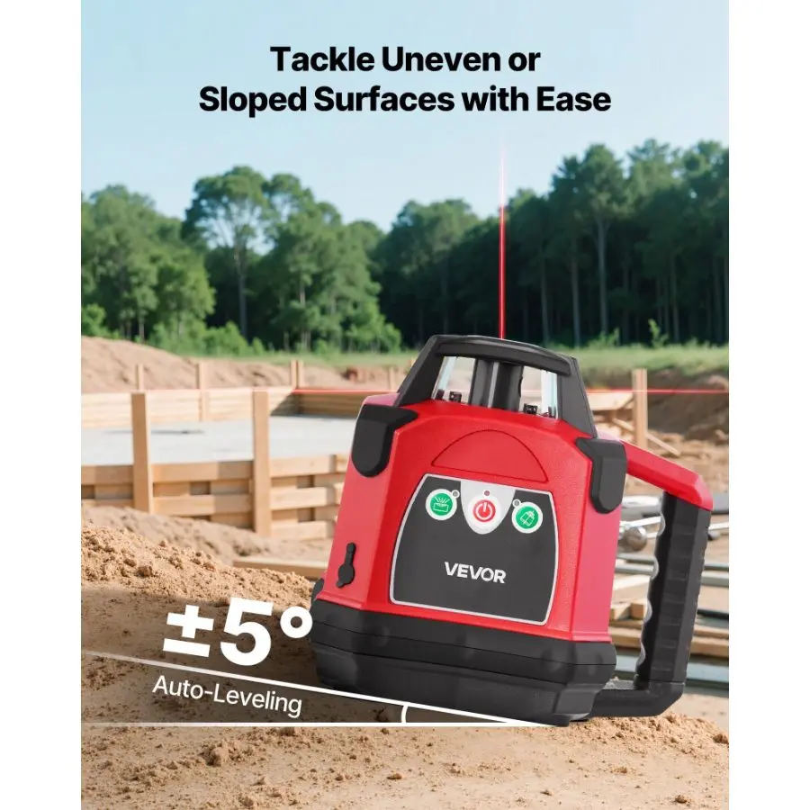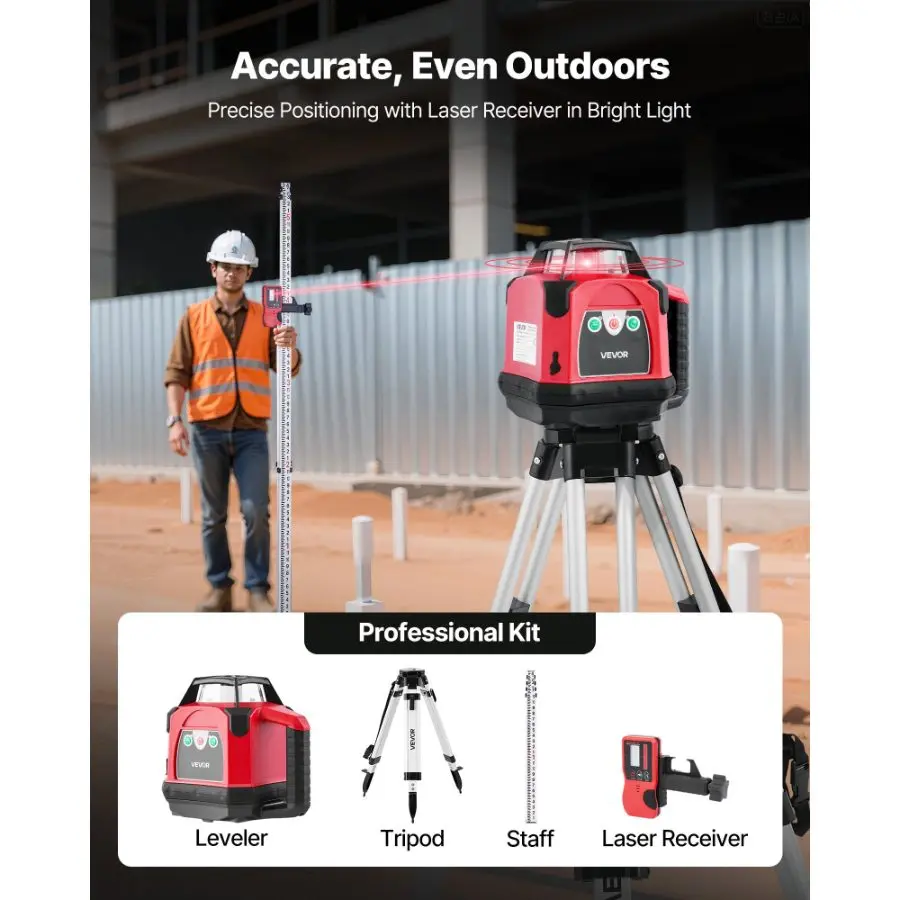 VEVOR Rotary Laser Level Kit, 984ft 360 - Degree Self Leveling Red Horizontal Laser Transit, with Tripod, Receiver, Remote Control, Scale, Toolcase, IP54 Waterproof, 0.12in/100ft Precision for ConstructionVEVOR Rotary Laser Level Kit, 1650ft 360-Degree Self Leveling Red Horizontal Laser Transit,with Heavy-duty Tripod, Receiver, Remote Control, Toolcase, IP54 Waterproof, 0.06 in/100 ft for Construction Rotatable Tripod Anti-Slip Foot Pads Portable Carrying Case Ultra-Long Working