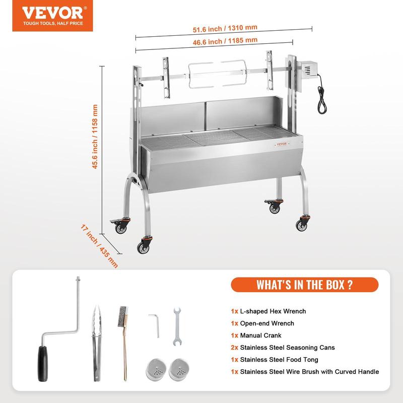 5. VEVOR Rotisserie Grill with Windscreen, TikTokShopBlackFriday, BBQ Whole Pig Lamb Goat Charcoal Spit Grill, 46 Inch 132 Lbs Capacity, Electric 52W Motor Stainless Steel Roaster with Lockable Wheels, for Camping Outdoor