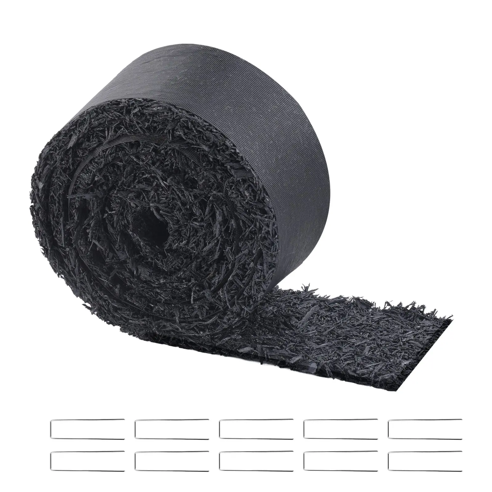 Weed Control: This rubber mulch roll effectively prevents weed growth by blocking sunlight and avoiding weed roots from penetrating.Its durable and thick design provides long-lasting weed control.Mud Prevention: Ideal for wet areas, this rubber mulch mat helps reduce mud and creates a tidy, well-defined separation between flower beds and lawns.Even after rain, you can enjoy outdoor activities without the mess.Breathable & Water-Permeable: The fiber gaps allow for excellent air circulation, letting water and nutrients reach plant roots, ensuring they are well nourished.The breathable design also helps prevent soil compaction.Low Maintenance: Made from recycled rubber, this garden mulch mat is highly durable, abrasion-resistant, and anti-aging.This black garden pathway walkway mulch requires no special upkeep and won’t easily wear out, saving you time and reducing weed control costs for reliable outdoor use.Versatile Applications: Equipped with 10 U-shaped ground stakes, the rubber mulch mat can be leveled and fixed in the required positions to create clean and attractive outdoor spaces for courtyard paths, streetscapes, and other scenes.VEVOR Rubber Mulch for Landscaping, Recycled Rubber Mulch Mat 120 x 4.5 in, Permanent Rubber Pathway, Natural-Looking Black Mulch Garden Edging Border for Plants, Vegetables & Flower Garden Barrier