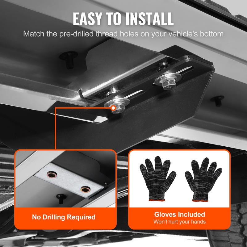 • Wide & Non-Slip Step Bars: The 6-inch/152.4mm wide step bar provides easy access, enhanced by an anti-slip surface with a distinct texture for additional safety. It's user-friendly for the elderly, children, and pets, protecting against slips and vehicle damage from road debris.