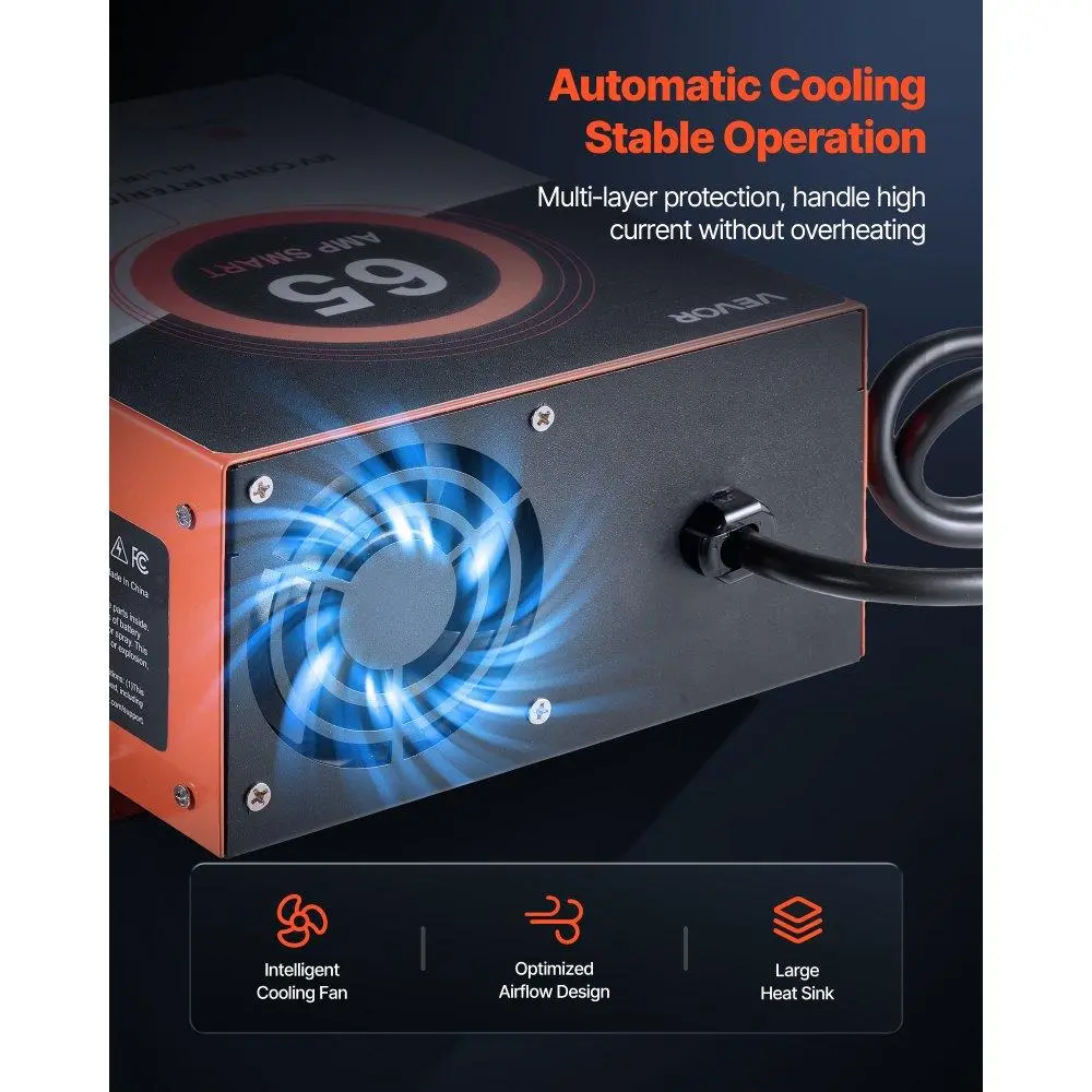 Delivers up to 65A clean and consistent current. Powers essential RV electronics like lights and speakers. Suitable for medium-capacity RV batteries rated 55Ah–70Ah.