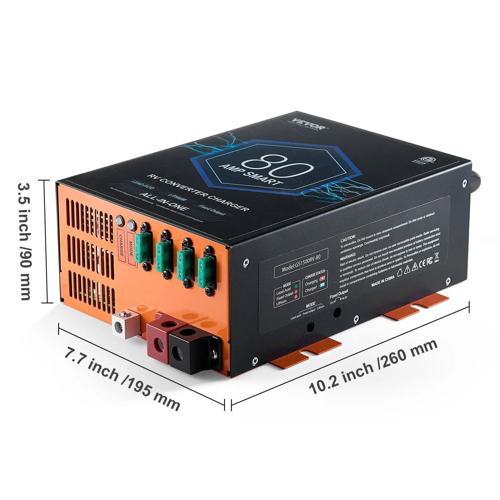 • High-Performance 80A Converter: Delivering up to 80A of clean current, our RV power converter charge effortlessly drives all your RV electronics and appliances, from sound systems to lighting, ensuring comfort on every journey. Ideal for large-capacity RV batteries ranging from 75Ah to 80Ah.