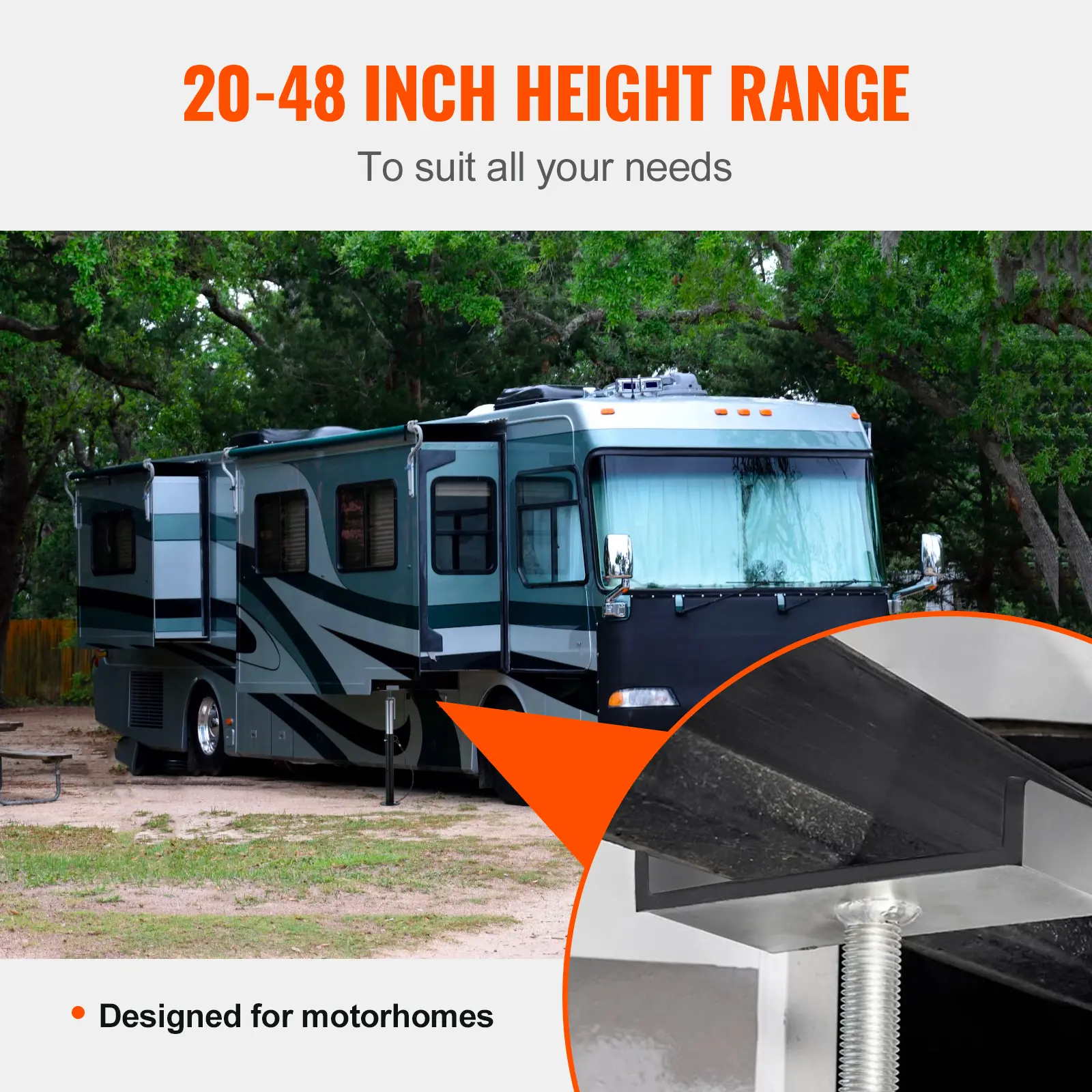 • Versatile Compatibility: Our camper slide out support jacks provide an adjustable height range of 20-48"/500-1230 mm, making it suitable for various RVs with different ground clearances. Enjoy the flexibility to adapt to different RV heights effortlessly.
