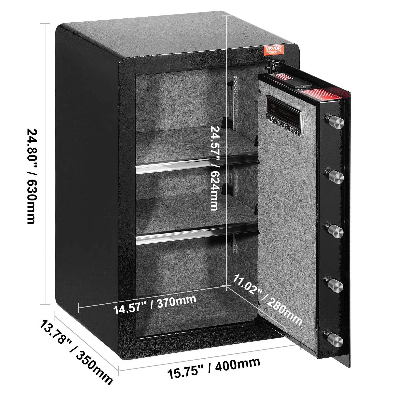 5. VEVOR Single Door 3.5 cu.ft Safe Box with Key Lock & Password, , Safe Lock Box with Fireproof Bag, Key Rack, LED Light, and 2 Shelves for Money, Documents, Jewelry, and Valuables, Black