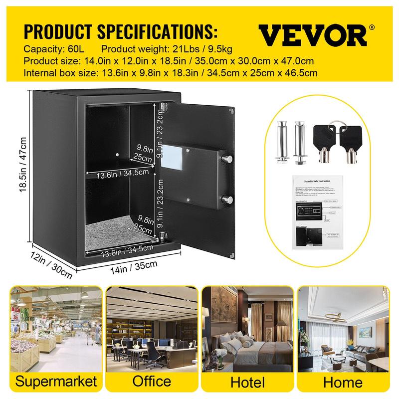 • 2.1C Large Capacity: The interior of this small safe is 2.1 cubic feet, and able to keep valuable items like passports, jewelry, watch, mobile hard disk, cash, document. Rest assured to use it to store your valuables, personal information. Also, the carpeted floor and a removable shelf inside protects items from damage.