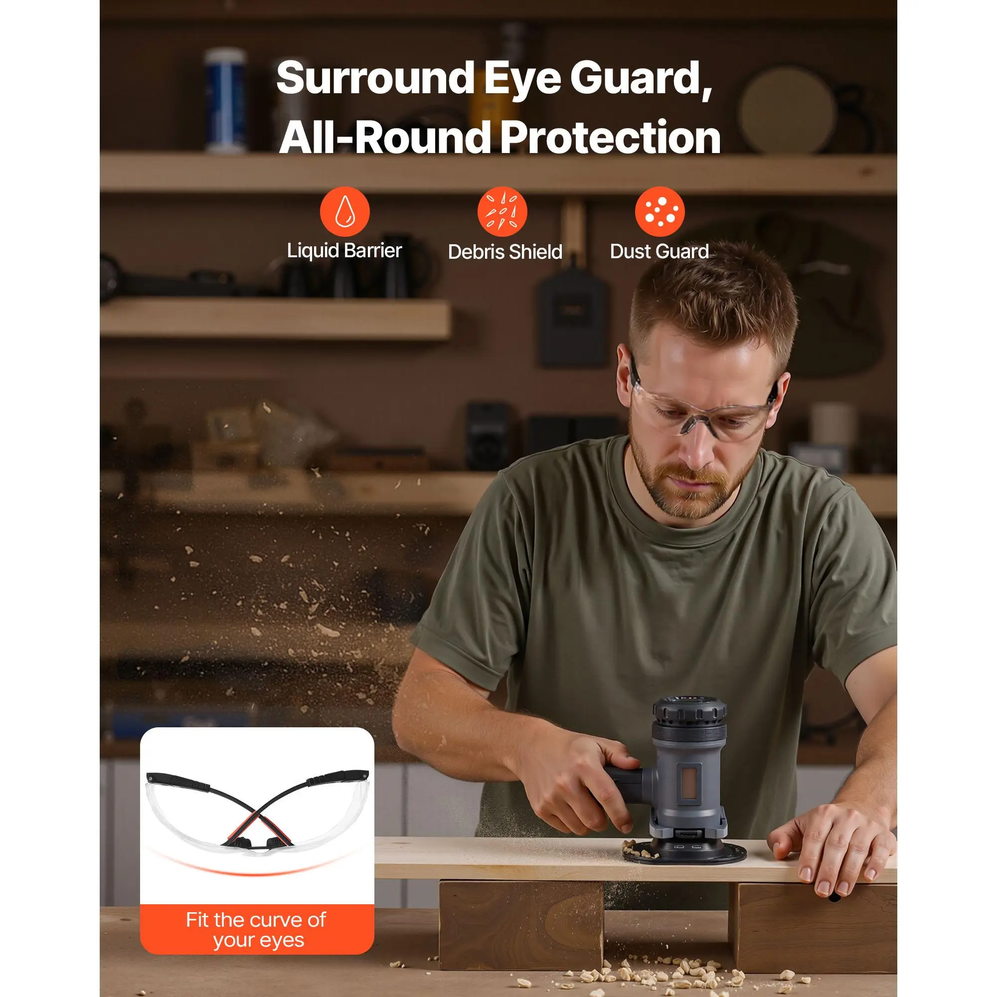 5. VEVOR Safety Glasses Anti-Fog Scratch-Resistant Clear Lens Impact-Resistant Polycarbonate ANSI Z87.1+ Wraparound Design Adjustable Length & Angle for Work Lab & Construction