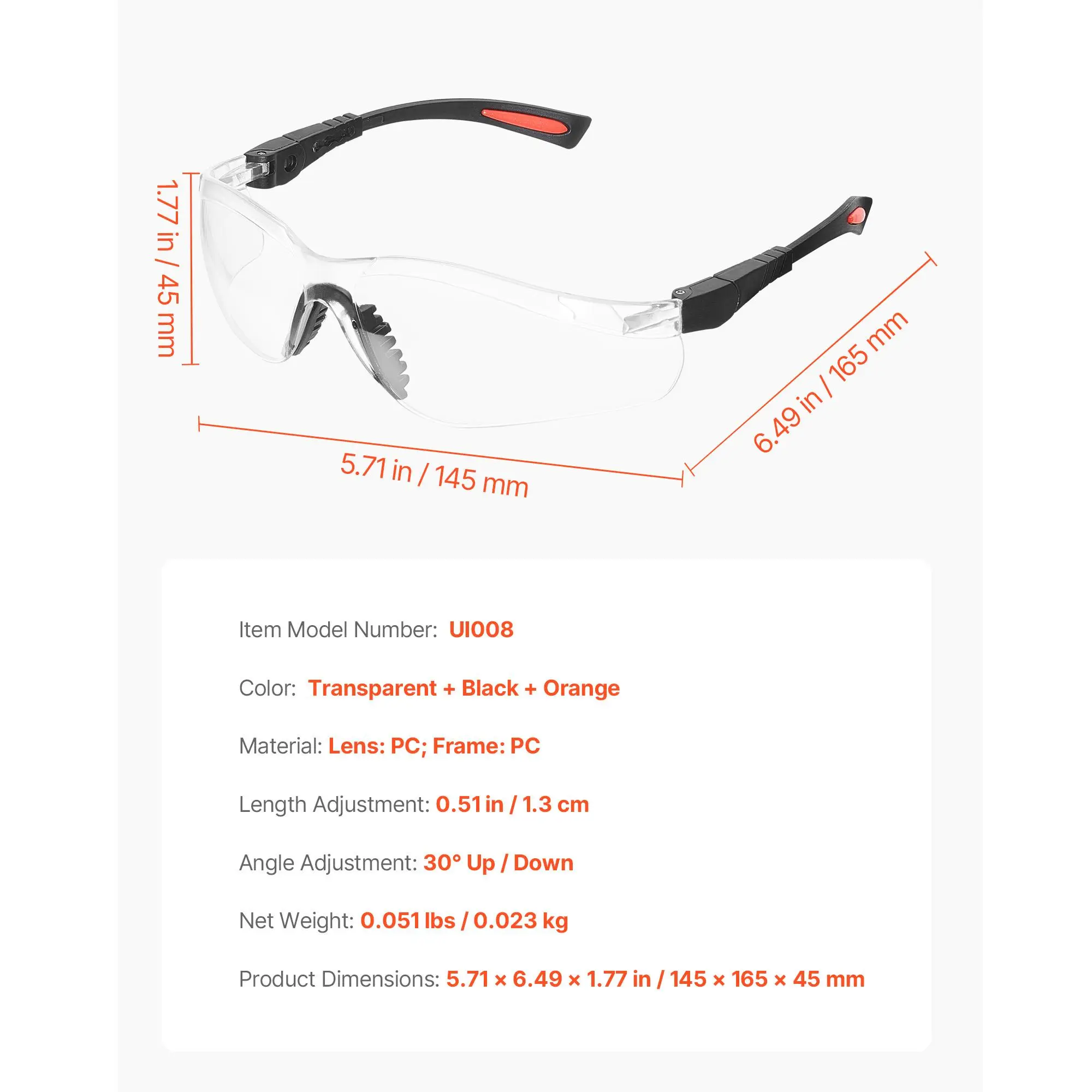 • Comfortable to Wear: The angle and length of the work goggle arms can be adjusted to fit the face, and the overall weight is only 0.051 lbs. With a soft nose bridge, the goggles are comfortable for all-day wear and are less likely to slip during physical activities