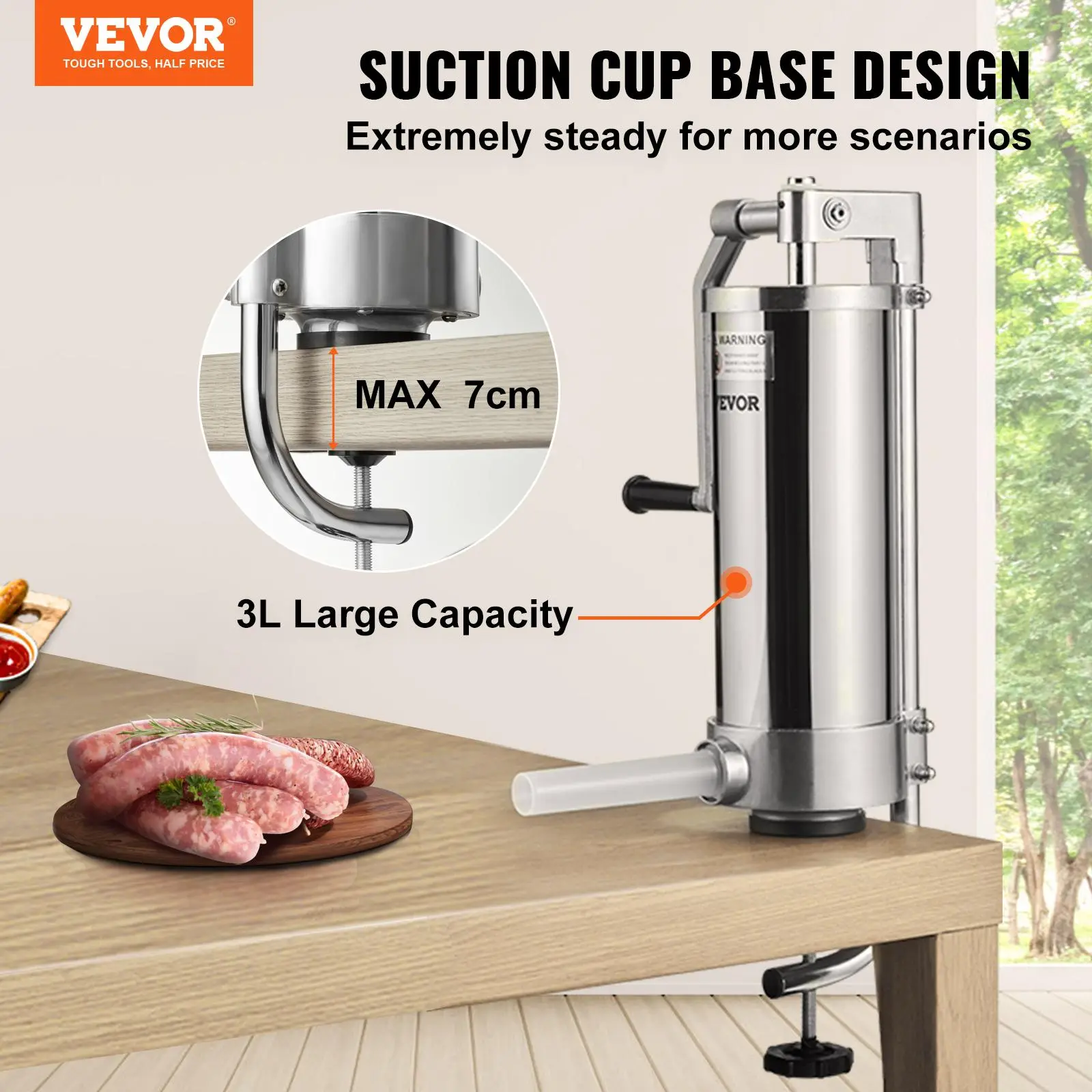 5. VEVOR Sausage Stuffer, 5LBS/3L Capacity, 304 Stainless Steel Vertical Sausage Stuffer, Sausage Filling Machine with 3 Stuffing Tubes, Suction Base and Manual Crank for Household or Commercial Use Kitchen Meat