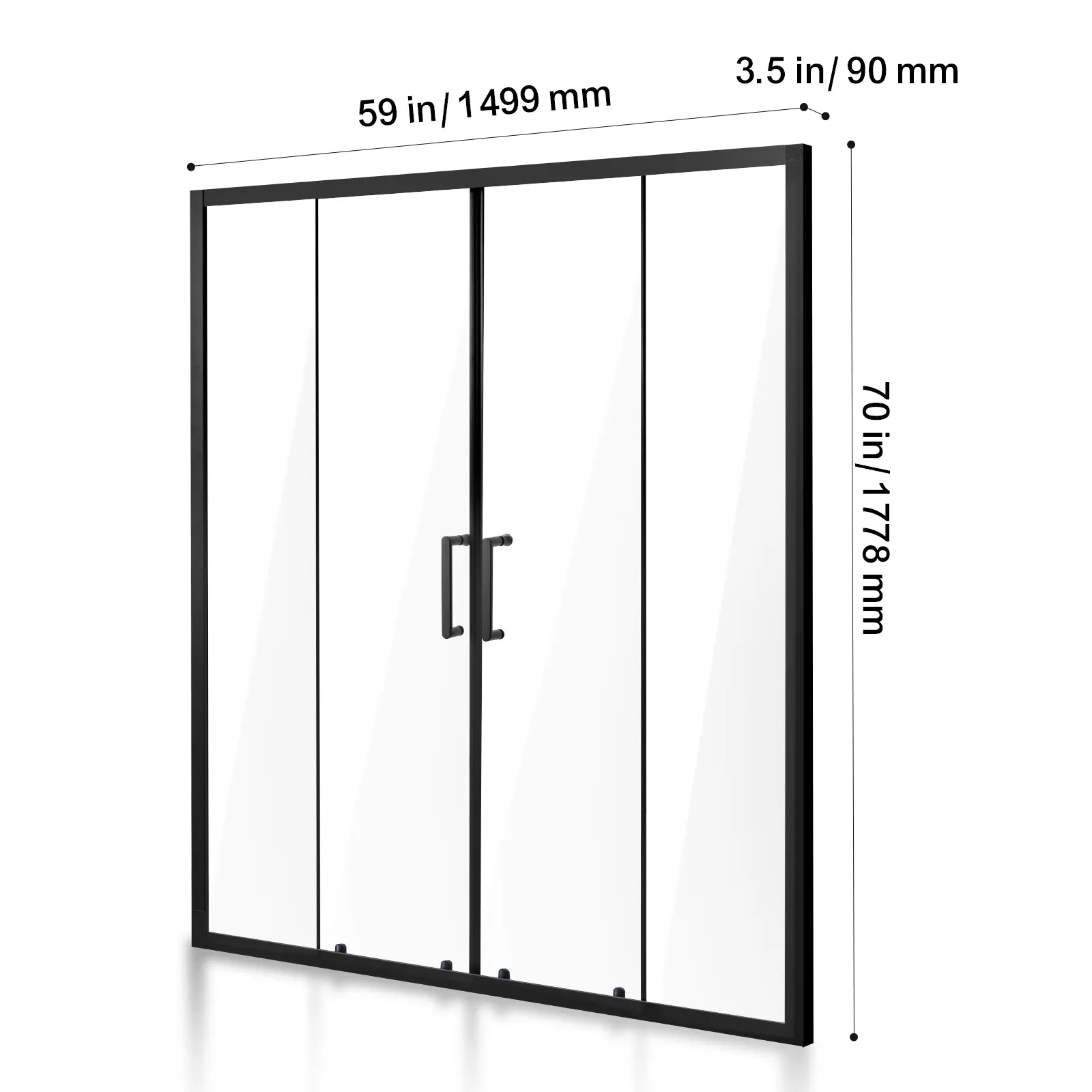 • Sturdy & Secure: The double sliding shower door features 1/4"(6mm) thickened SGCC shatterproof tempered glass, remarkably enhancing hardness and impact tolerance. It ensures no splashing even if shattered, building a solid defense for your bathroom space