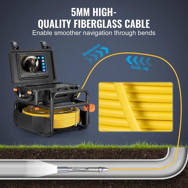 5. VEVOR Sewer Camera, 230 ft/70m, Self-Leveling Drain Camera with 512Hz Transmitter, Distance Counter, 9" Screen 1080P HD Snake Plumbing Camera with Light-12 LED & 32GB Card for Duct Pipe