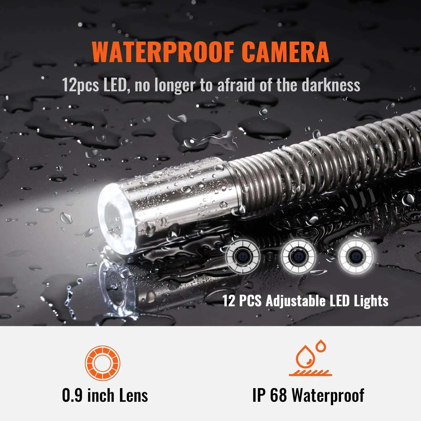 5. VEVOR Sewer Camera, , 300 ft/91.5 m, 9" Screen Pipeline Inspection Camera with DVR Function, Waterproof IP68 Camera with 12 Adjustable LEDs, with a 16 GB SD Card for Sewer Line, Home, Duct Drain Pipe Pl