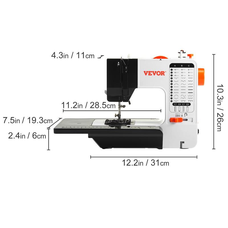 ⢠Wonderful 42pcs Set: VEVORās sewing machine kit has what you need to get started, including bobbins & spools, spare needles, needle threader, a built-in ruler extension table, thimble, match the most basic home sewing needs. Perfect for beginners and advanced in home decoration, crafts, prom dresses, pet clothes, shopping bags, etc.
