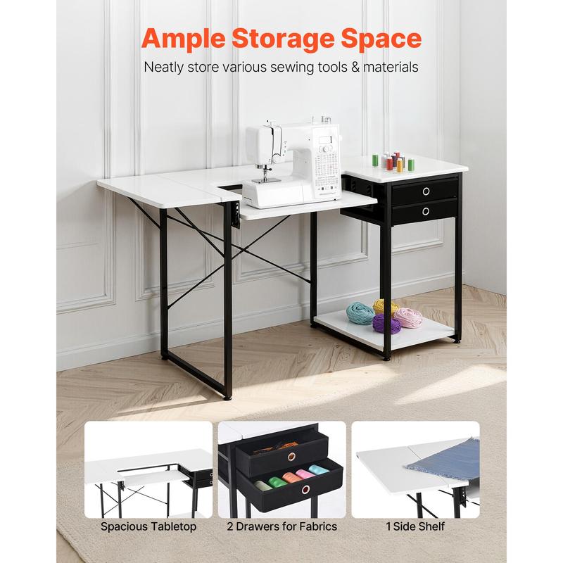 • Expandable Side Shelf: This folding sewing table includes foldable side shelves. Unfold to instantly expand the work surface for more space, and fold it up when not in use to save extra space. It is ideal for large sewing projects or tool storage