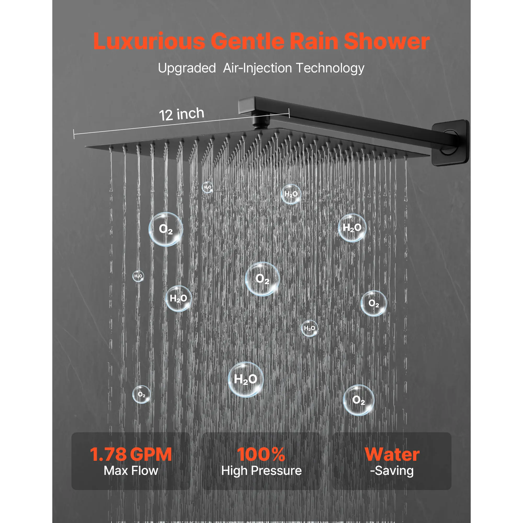 5. VEVOR Shower Faucet Set, Rainfall Bathroom Shower System with 12-Inch Square Rain Shower Head and Handheld Spray, Wall Mounted Bath Fixtures with Brass Valve and Trim Kit, Matte Black