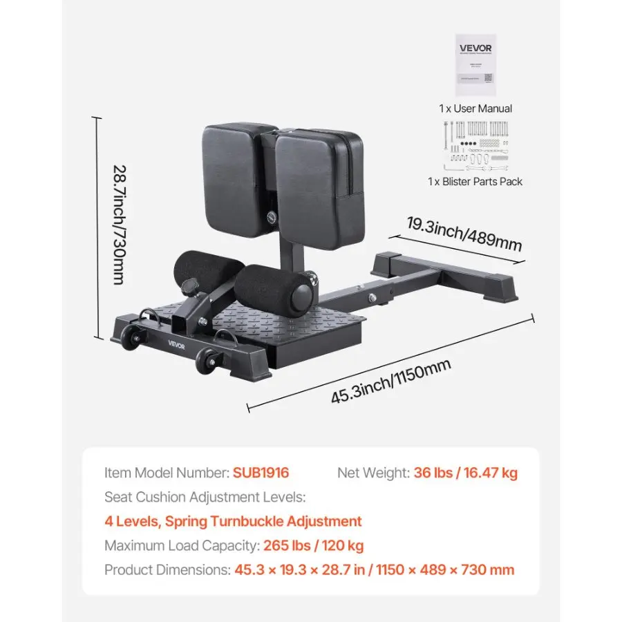 VEVOR Sissy Squat Machine, Multi-Function Deep Sissy Squat Bench for Leg Muscle Training, Easy Setup Foldable Core Waistline Glute Workout Equipment, Leg Exercise Machine for Home Gym, Black