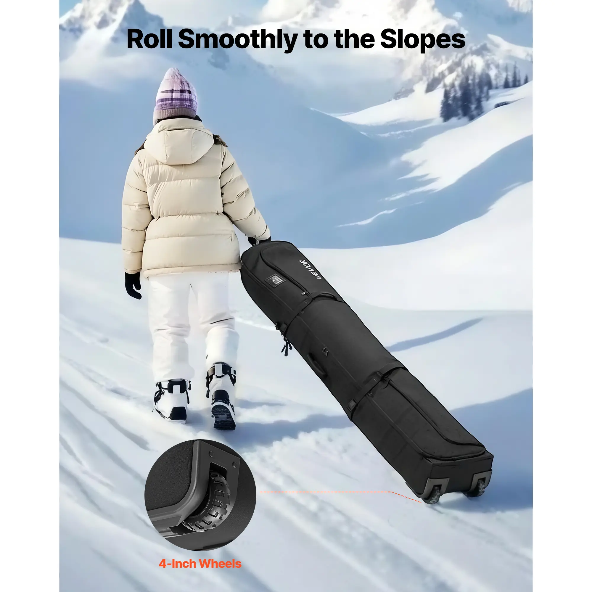 Carry the snowboard roller bag by hand or shoulder with ease. Switch between options as needed. The bag offers flexibility for various carrying needs.
