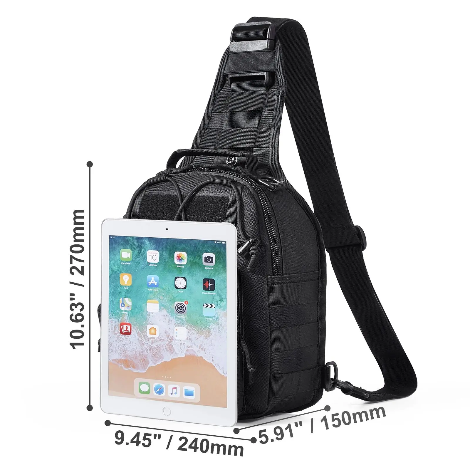 • 10L Large Capacity: The sling bag measures 9.45 in/240 mm in length, 5.91 in/ 150 mm in width, and 10.63 in/270 mm in height, offering a total capacity of 10L. It can easily accommodate gym equipment, workout gear, clothes, shoes, basketballs, and other items needed for sports and travel, perfectly meeting your travel needs.
