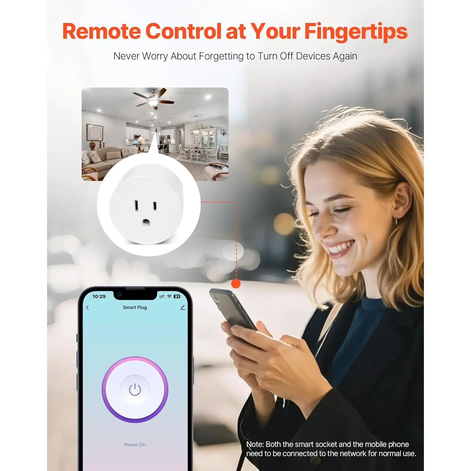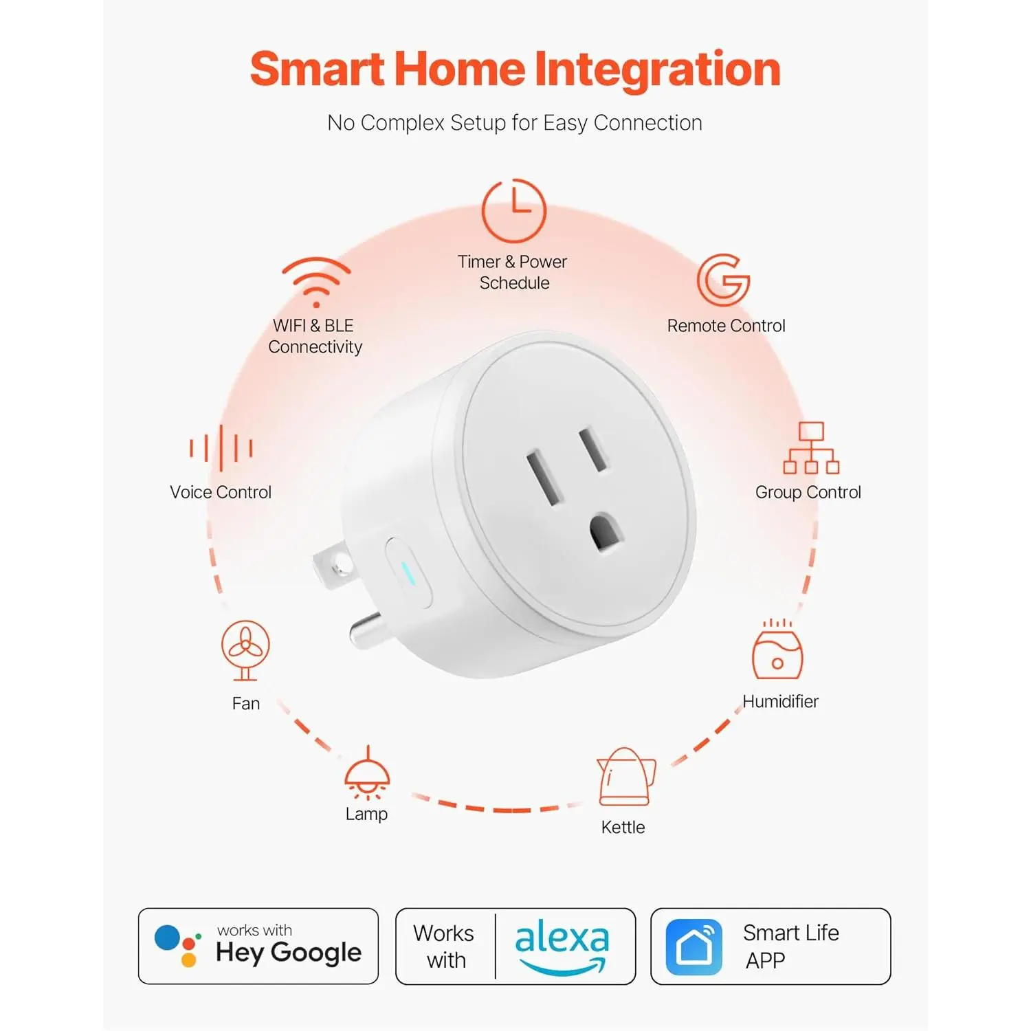 Transform ordinary appliances into smart devices with quick connectivity!Experience hassle-free voice control via Alexa/Google Assistant at home, or manage remotely through the app when out.