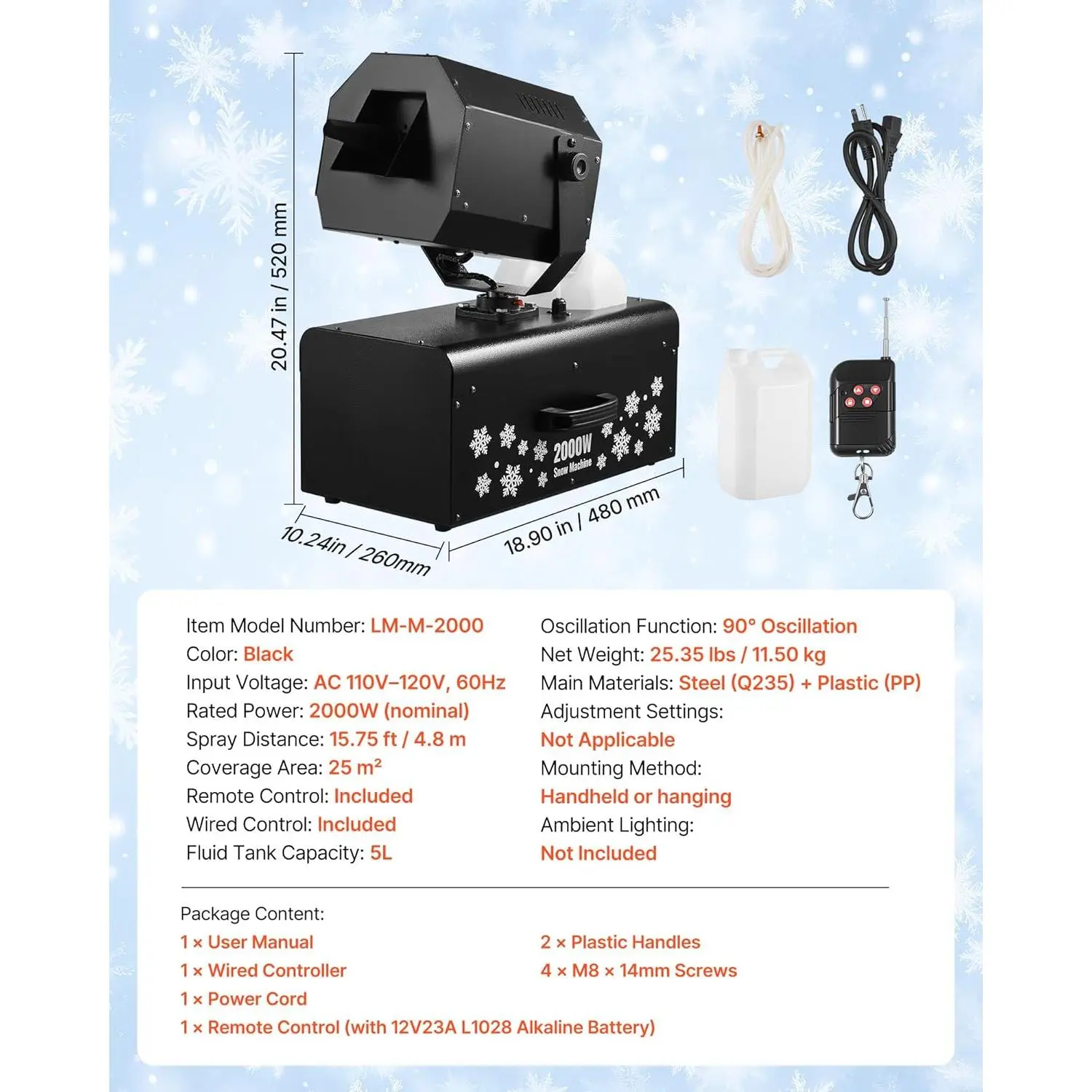 Simple and user-friendly, this snow machine can be operated with ease following the step-by-step instructions in the user manual.No professional guidance is needed, making it accessible for beginners.
