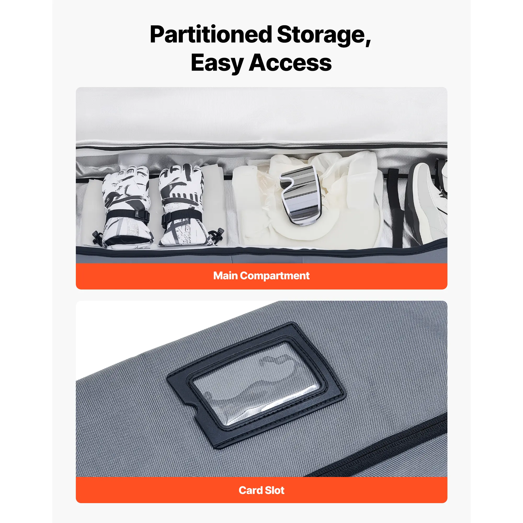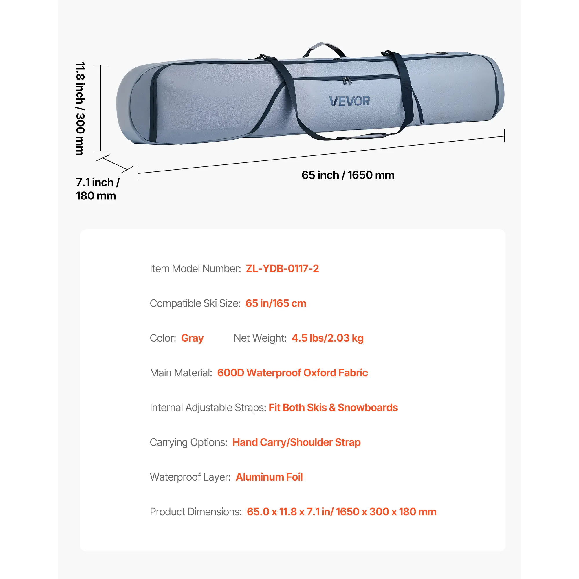 • Durable Construction: Made from 600D waterproof Oxford fabric with reinforced zippers and padded shoulder straps, this bag is built to last. It guards your gear through various adventures, ensuring your snowboard and accessories are safe.