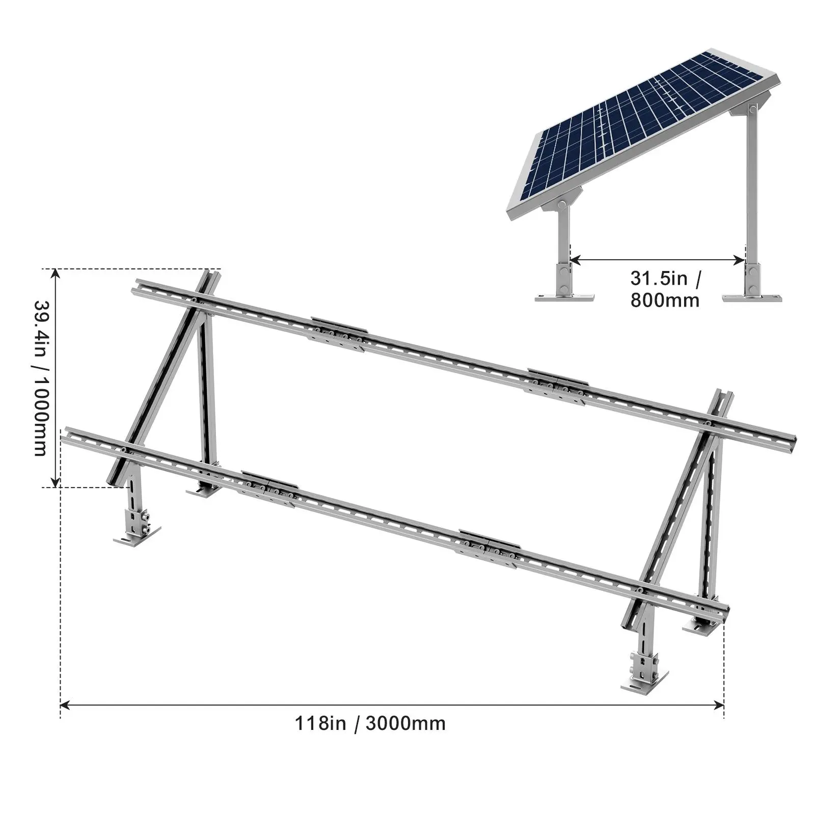 • 30-60° Flexible Adjustment: VEVOR solar panel mount brackets offer a 30-60 degree flexible adjustment, allowing you to easily adjust the solar panel's optimal angle based on the changing direction of sunlight. Maximum sunlight exposure and boosts overall energy efficiency.