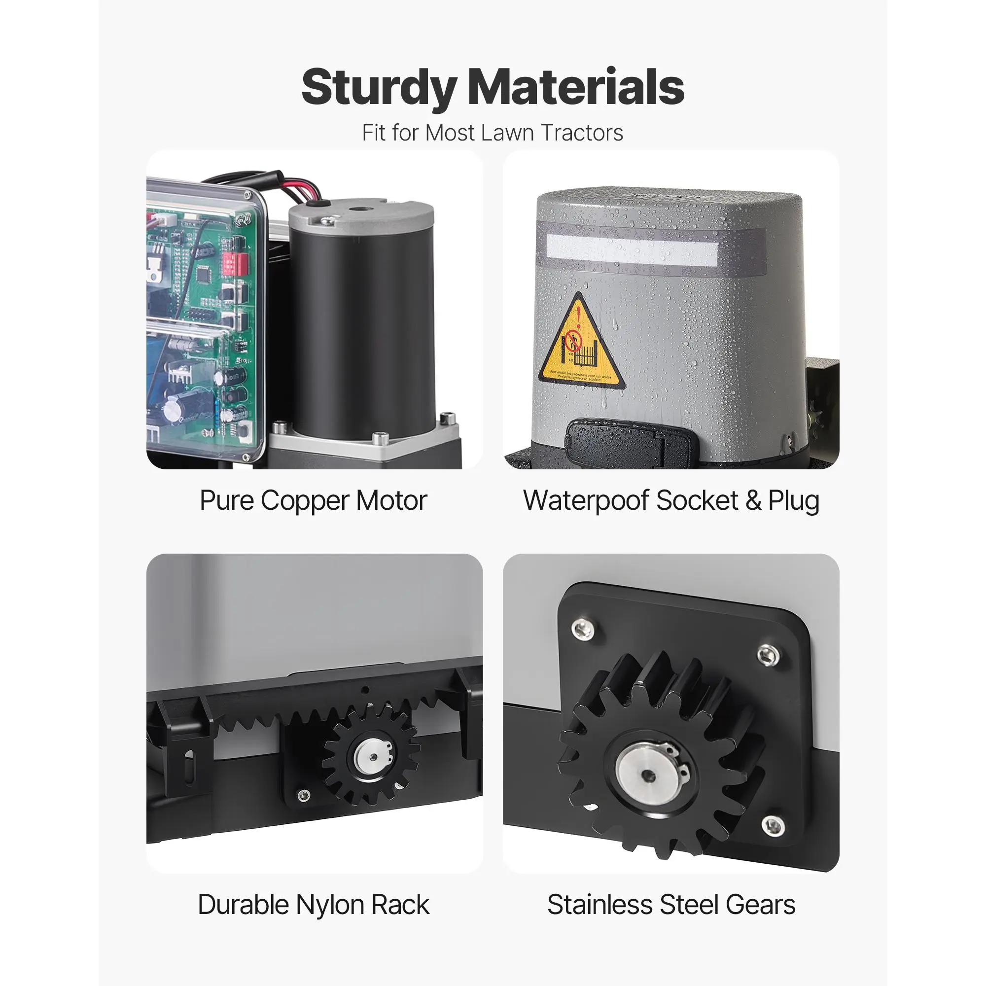 • Durable Design for Harsh Environments: Made with a cast aluminum and ABS shell, this sliding gate opener is durable and resistant to damage. The nylon gear rack offers strong impact resistance, while the stainless steel gears are highly corrosion-resistant, durable, and strong. With an IP44 rating for water and dust resistance, it performs reliably in all weather conditions.