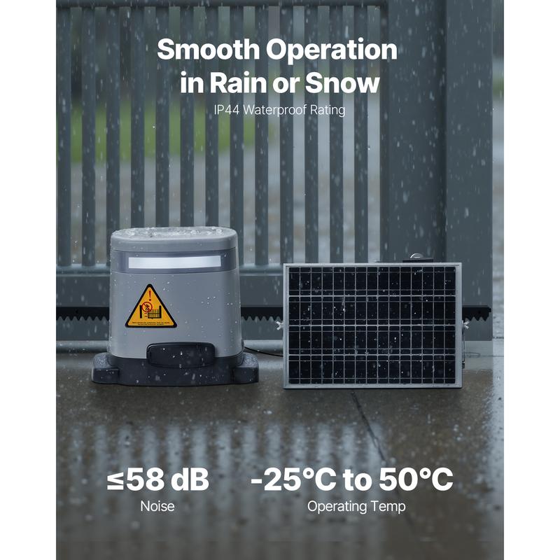 • Powerful Performance & High Load Capacity: Equipped with a 280W motor and 2400r/min speed, this solar gate opener supports gates up to 65.62 ft / 20 meters wide and 1799 lbs / 816 kg in weight, ensuring smooth and reliable operation for residential, farm, or commercial gates.