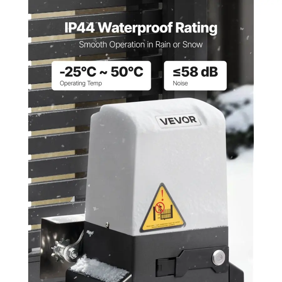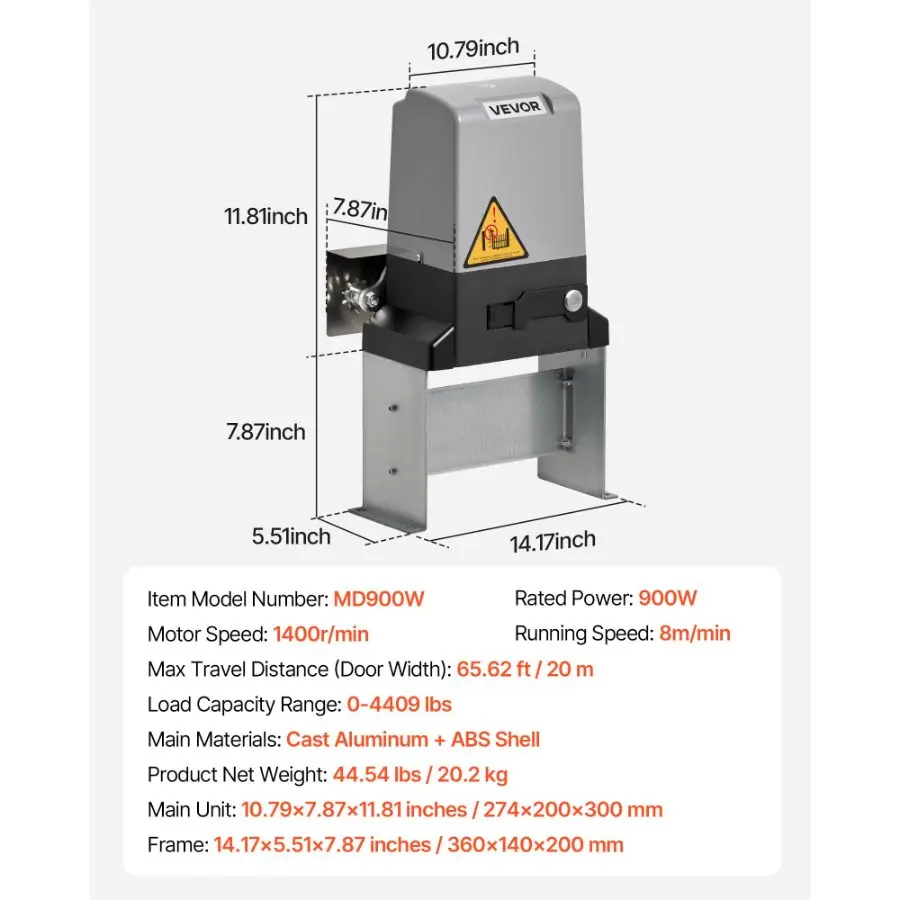 VEVOR Solar Sliding Gate Opener, 280W Electric Gate Opener for Doors up to 65.6ft 1799lbs, Gear Track Rolling Fence Door Motor with Infrared Sensor 2 Remote Controls, Driveway Gates Opening SystemVEVOR Automatic Gate Opener, 900W Electric Sliding Gate Opener for Doors up to 65.6ft 4409lbs, Chain Drive Rolling Door Motor with Infrared Sensor & 2 Remote Controls, Driveway Gates Opening System Pure Copper Motor Durable Iron Sprocket Robust Steel Base Waterproof &