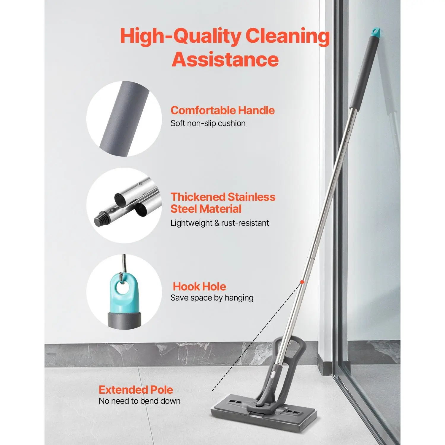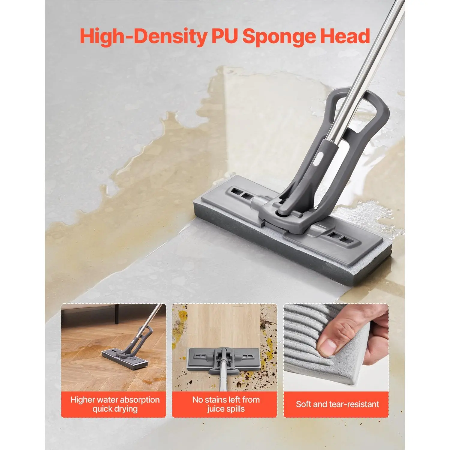 VEVOR Sponge Mop, High-Density PU Sponge Mop with 1 Pcs Sponge Mop Replacement , Easy to Squeeze Sponge Mop with Hook & Loop for Head Change, Fit for Various Floors’ Cleaning