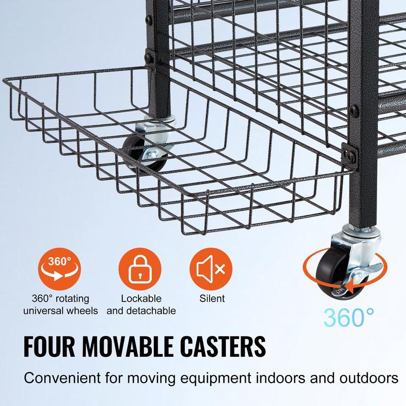 ·Durable Wheels with Brakes: This garage sports storage equipment is equipped with 4 universal wheels that can rotate 360°, allowing you to easily move it anywhere. 2 wheels are lockable; you can securely lock the cart in place. Perfect for both indoor and outdoor use, eliminating the hassle of organizing equipment after sports, and letting you fully enjoy your activities.