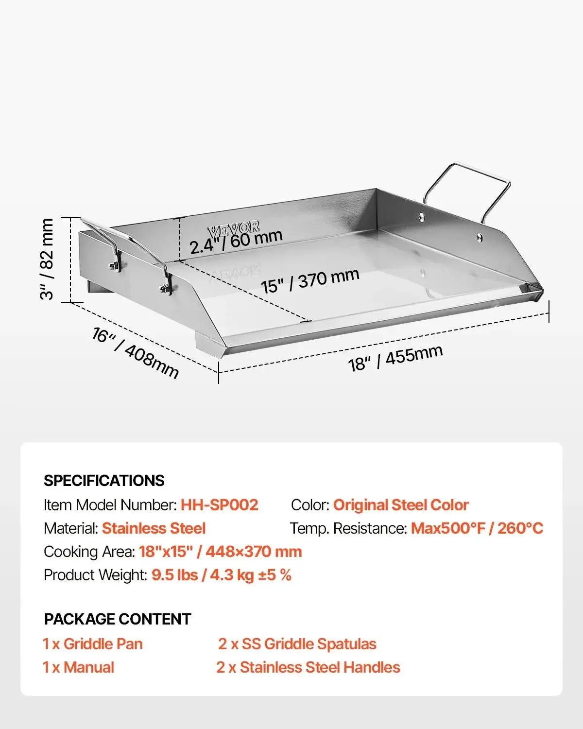 ·Quality Stainless Steel: Made from durable stainless steel, this griddle for gas grill can handle temperatures up to 500℉, giving you the freedom to cook at high heat. The bottom x-shaped reinforcement resists to deform
