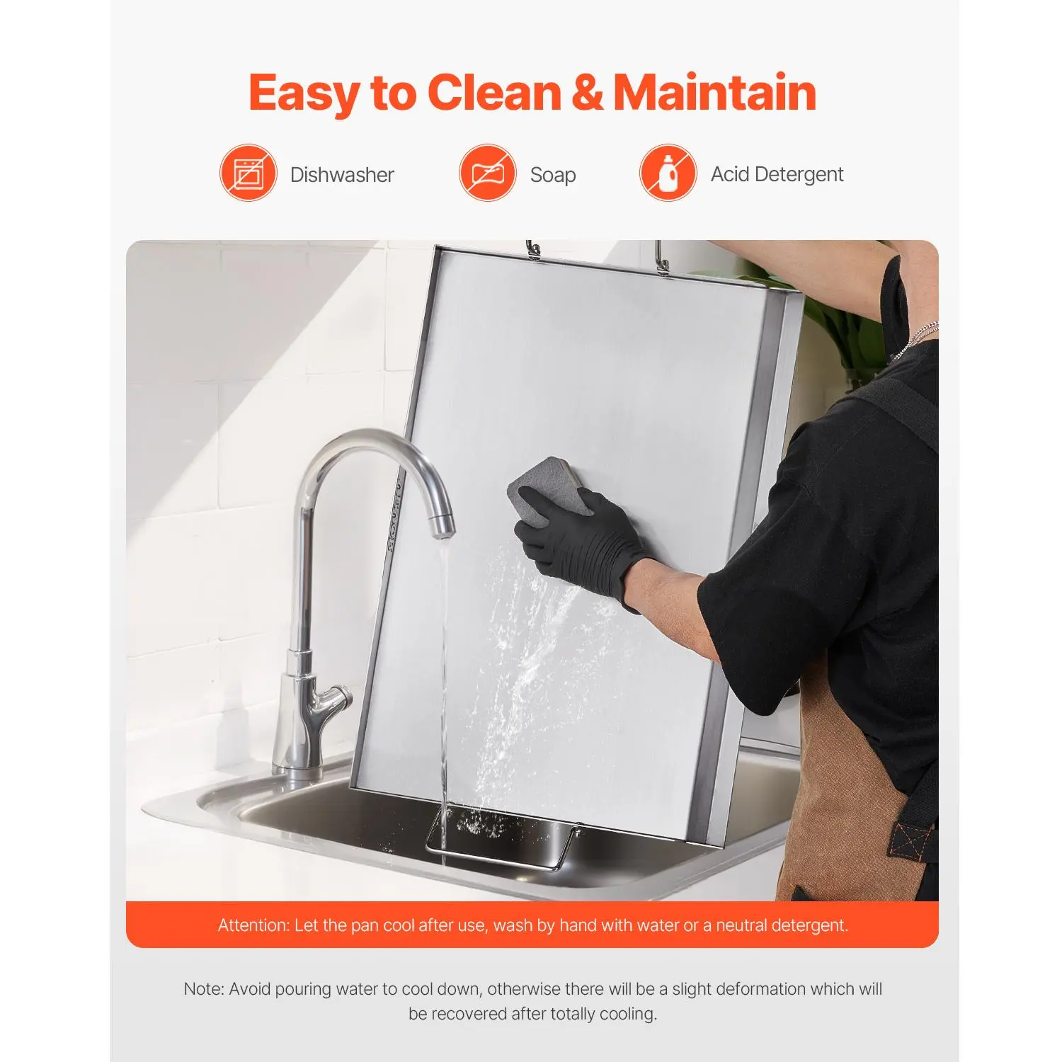 • Quality Stainless Steel: Made from durable stainless steel, this griddle for gas grill can handle temperatures up to 500℉, giving you the freedom to cook at high heat. The bottom x-shaped reinforcement resists to deform