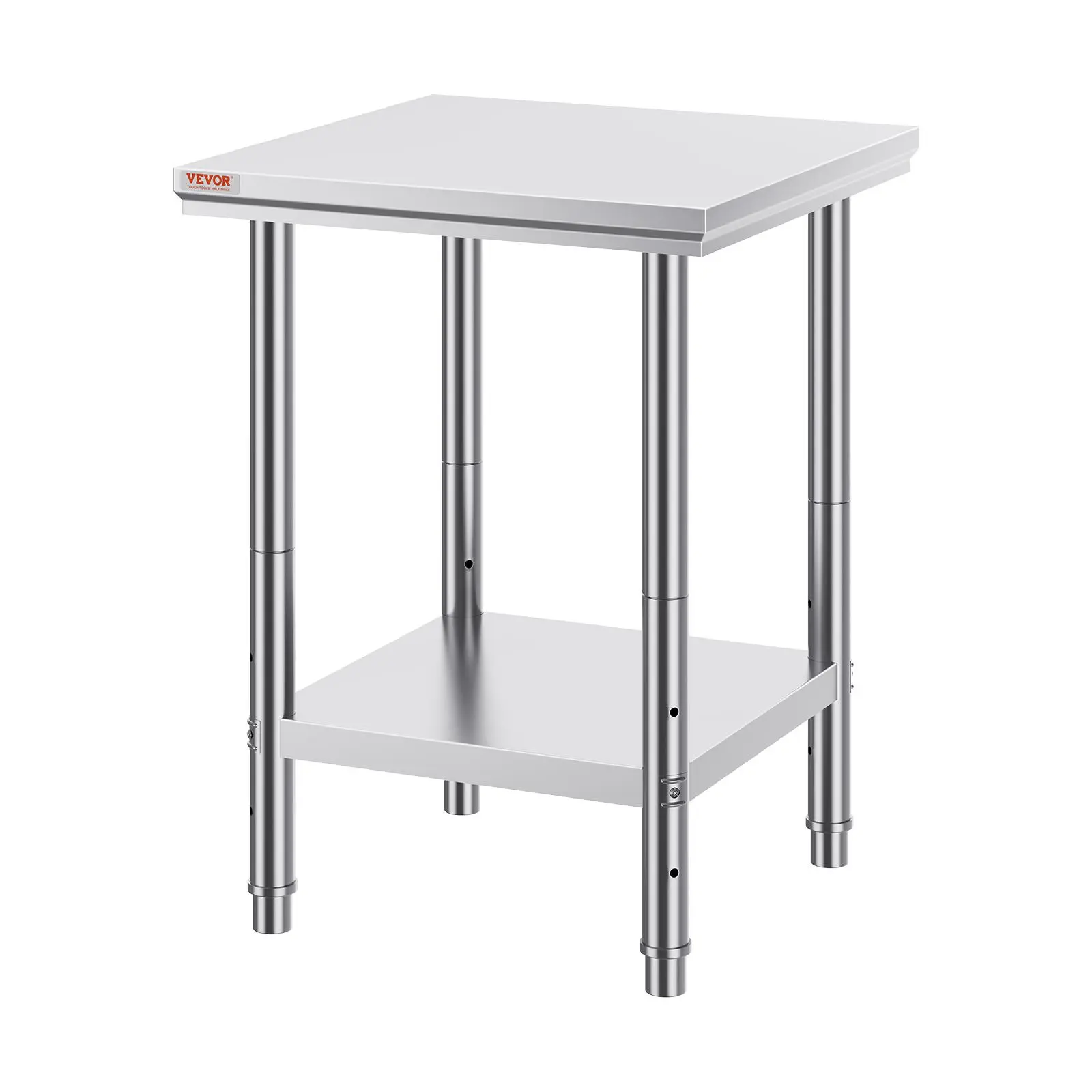 • High-Quality Stainless Steel: This work table, measuring 24 x 24 x 31 inch, is made from SUS201 stainless steel for the tabletop, shelves, and legs. It offers superior rust resistance, a sleek appearance, and a smooth surface that is easy to clean with a simple wipe. NSF certified, it meets strict public health standards, ensuring long-lasting protection for your health.