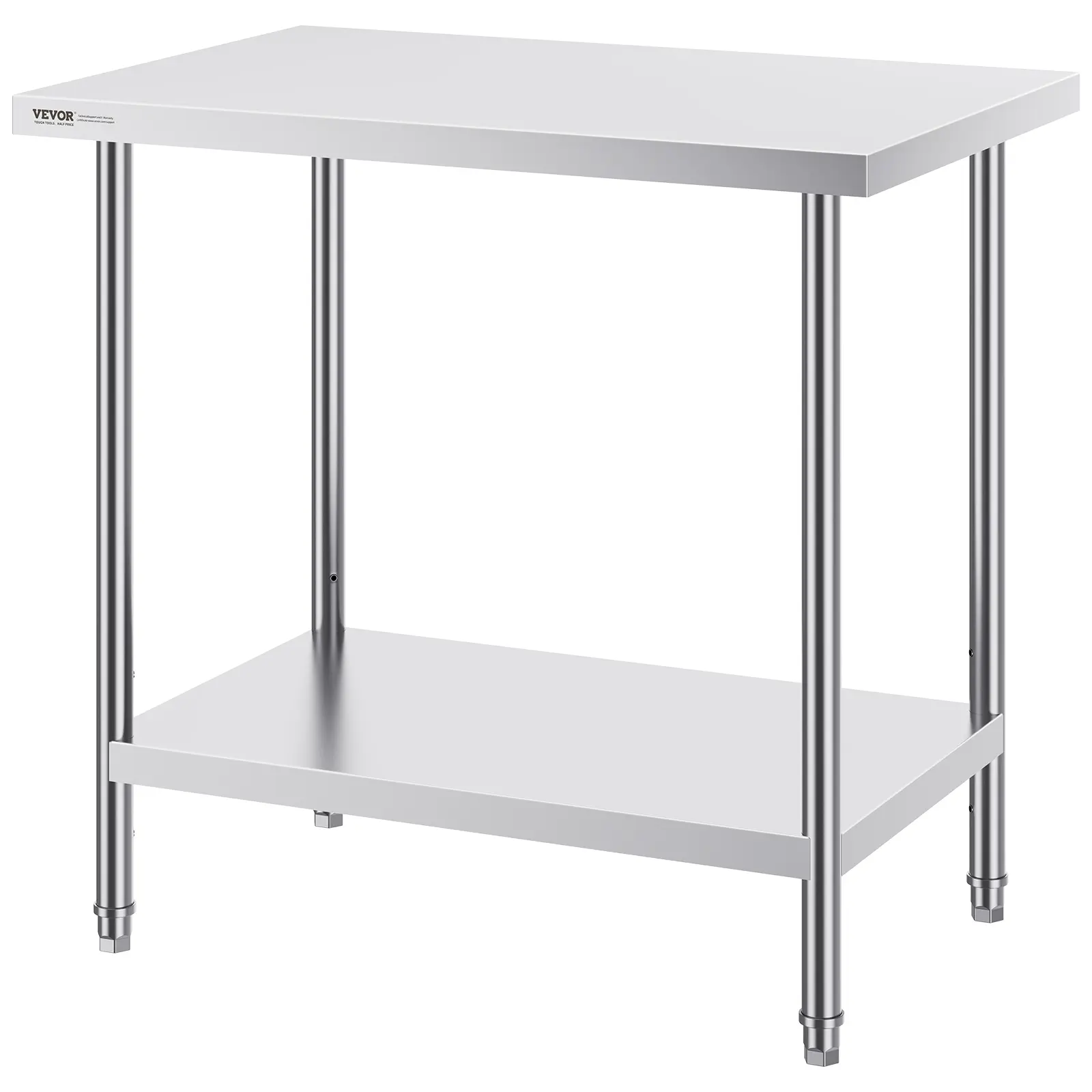 5. VEVOR Stainless Steel Prep Table, 24 x 36 x 34 Inch, 750 lbs Load Capacity, Heavy Duty Metal Worktable with 3 Adjustable Height Levels, Commercial Workstation for Kitchen Garage Restaurant Backyard