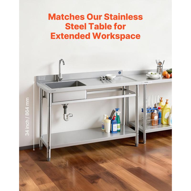 • 3-in-1 Multi-Functional Design: Combines a large workstation, deep sink, and adjustable bottom shelf for efficient washing, organizing, and storage. Our utility sink provides cleaning space; shelf height adjusts to 3 levels height