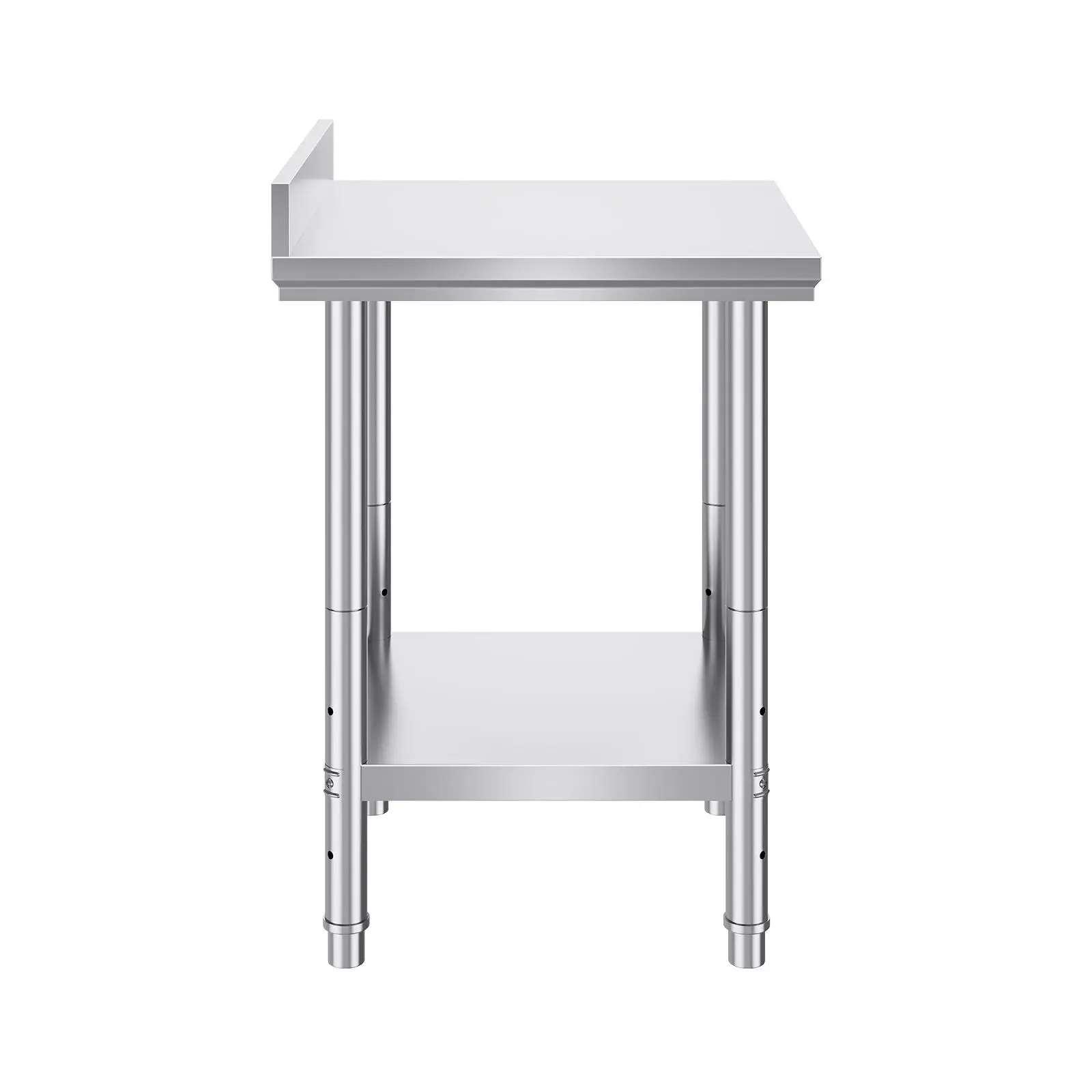 • User-Friendly Design: Featuring 3-level adjustable shelves, this work table offers the most user-friendly and practical functionality. Simply adjust the shelf height with screws to accommodate items of different sizes. The high rear backsplash prevents items from falling off and guards against water splashes.