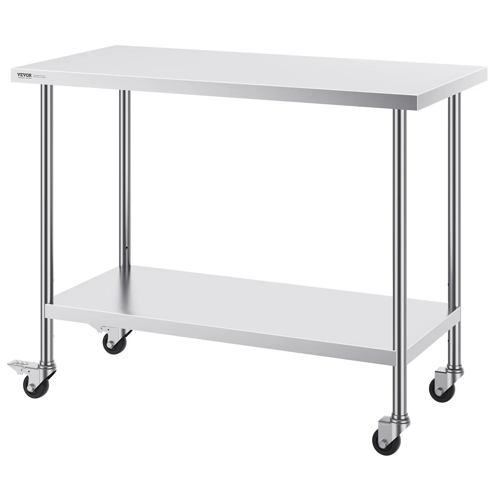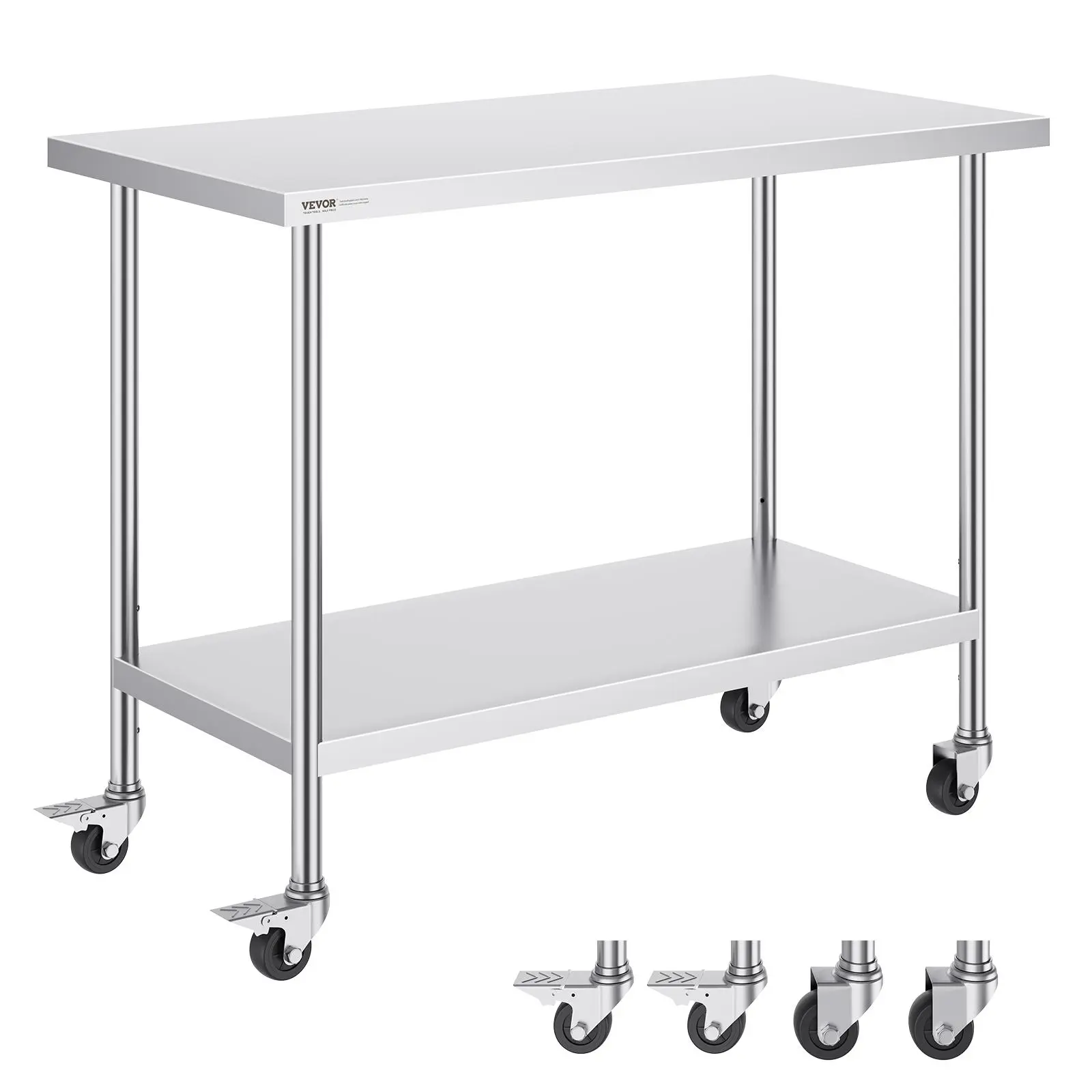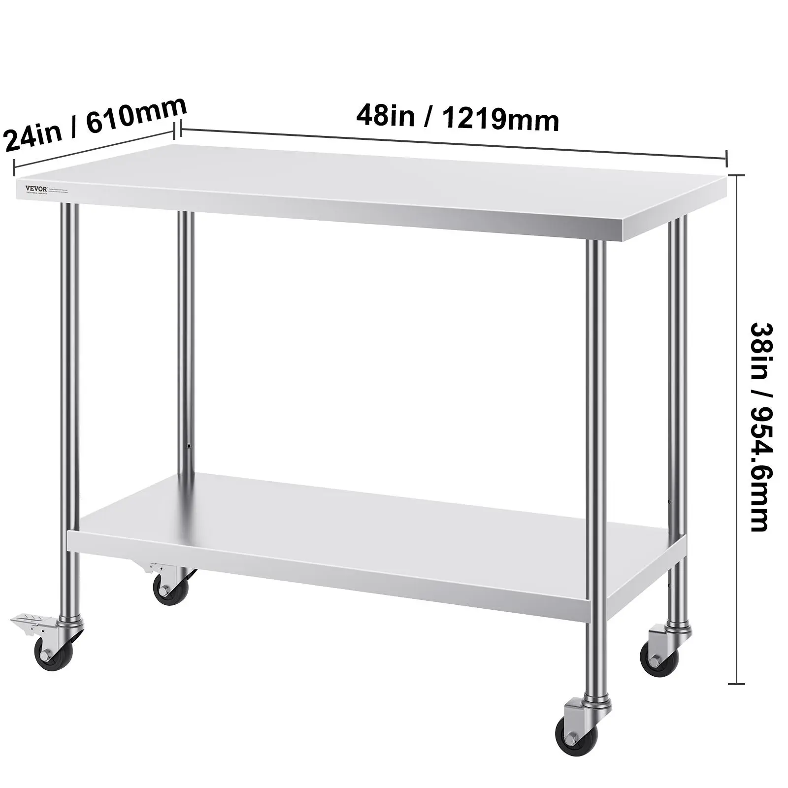 • High-Quality Stainless Steel: This work table, measuring 24 x 48 x 38 inch, is made from SUS201 stainless steel for the tabletop, shelves, and legs. It offers superior rust resistance, a sleek appearance, and a smooth surface that is easy to clean with a simple wipe. NSF certified, it meets strict public health standards, ensuring long-lasting protection for your health.