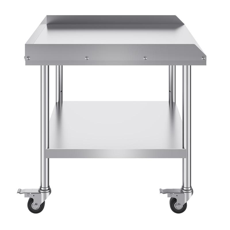 • User-Friendly Design: Featuring 3-level adjustable shelves, this work table offers the most user-friendly and practical functionality. Simply adjust the shelf height with screws to accommodate items of different sizes. Equipped with 4 swivel casters, including 2 with brakes, the table remains stable and can be easily moved to any location. The 2-inch edge backsplash prevents valuable equipment and supplies from sliding off the table and also protects against water splashes.