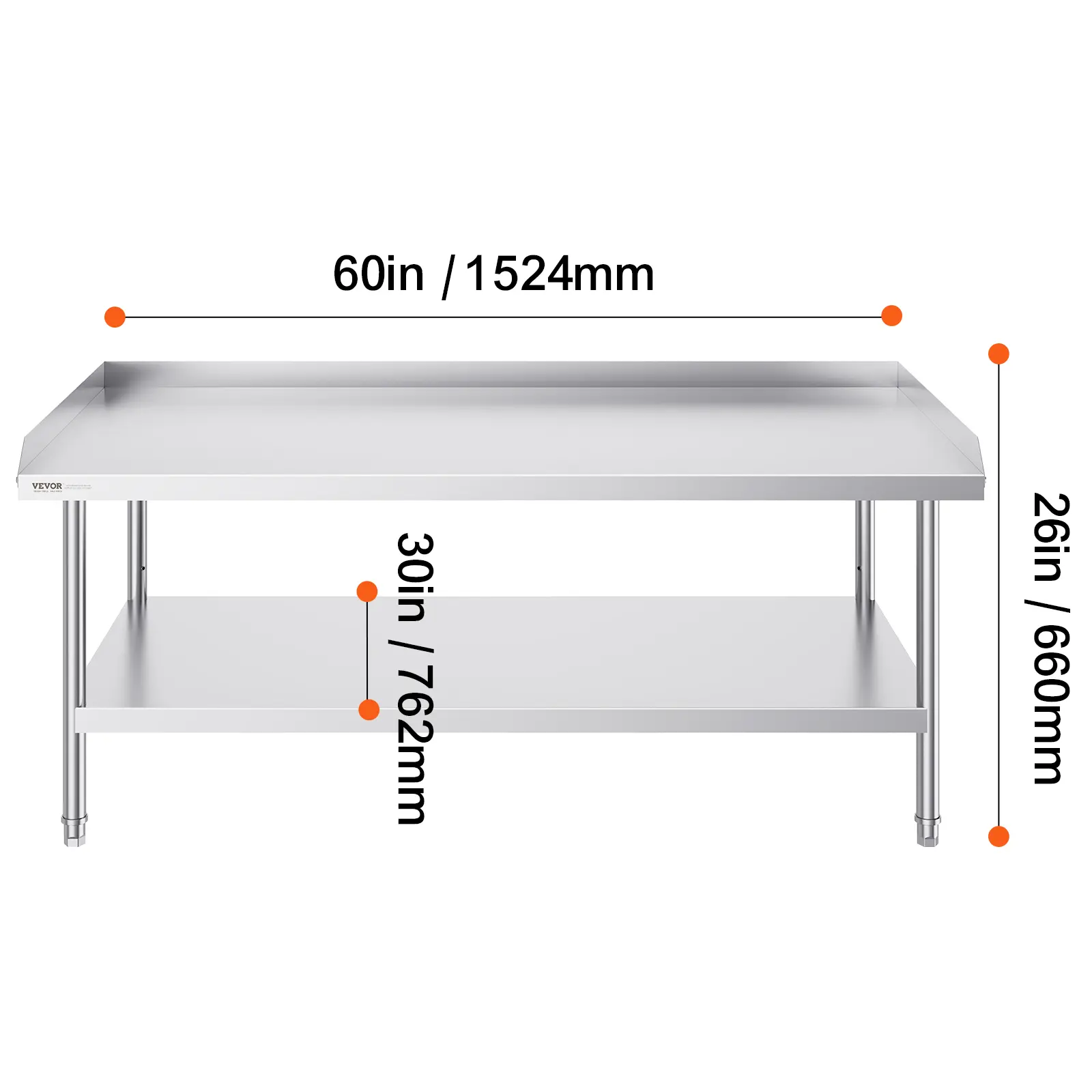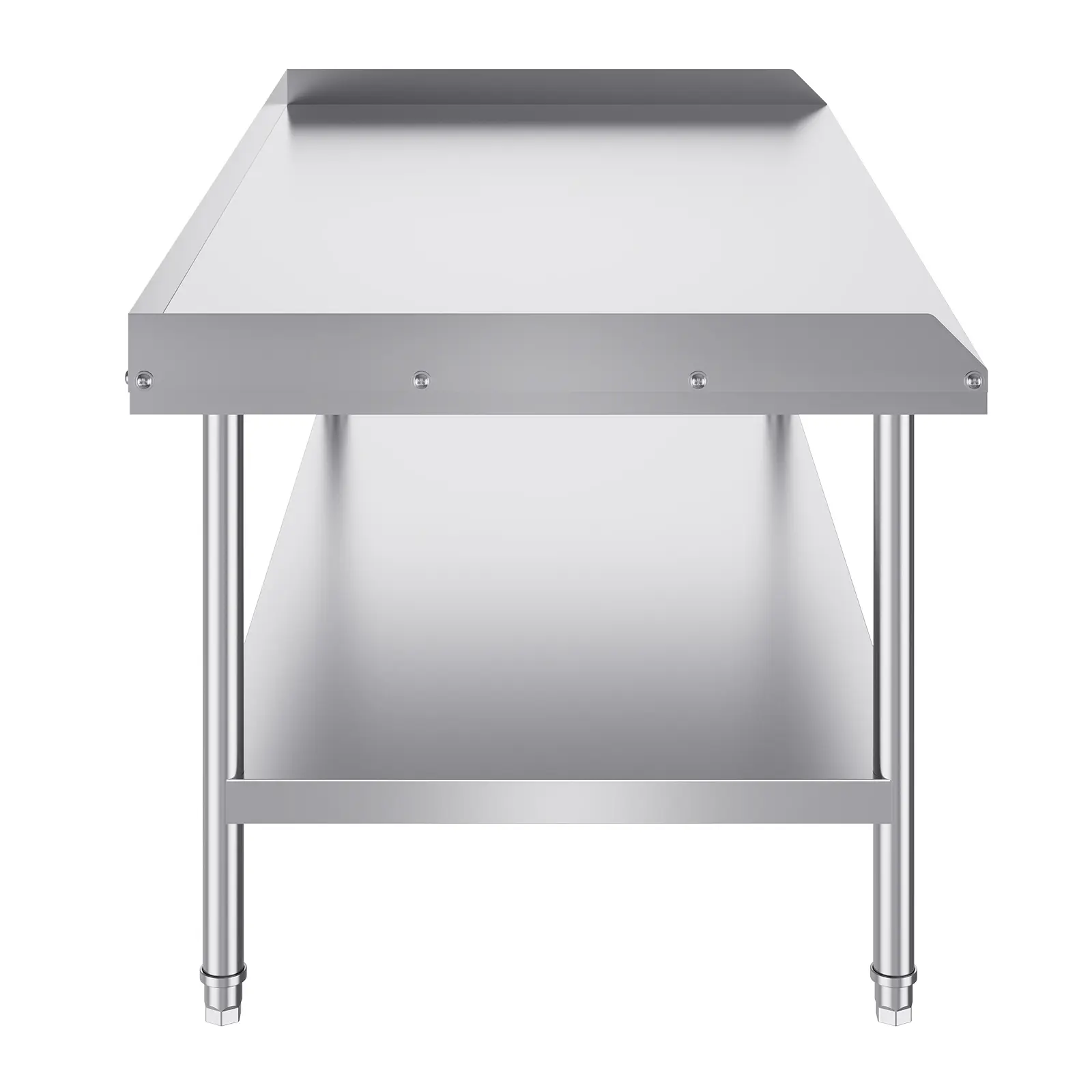 • User-Friendly Design: Featuring 3-level adjustable shelves, this work table offers the most user-friendly and practical functionality. Simply adjust the shelf height with screws to accommodate items of different sizes. The 2-inch edge backsplash prevents valuable equipment and supplies from sliding off the table and also protects against water splashes.