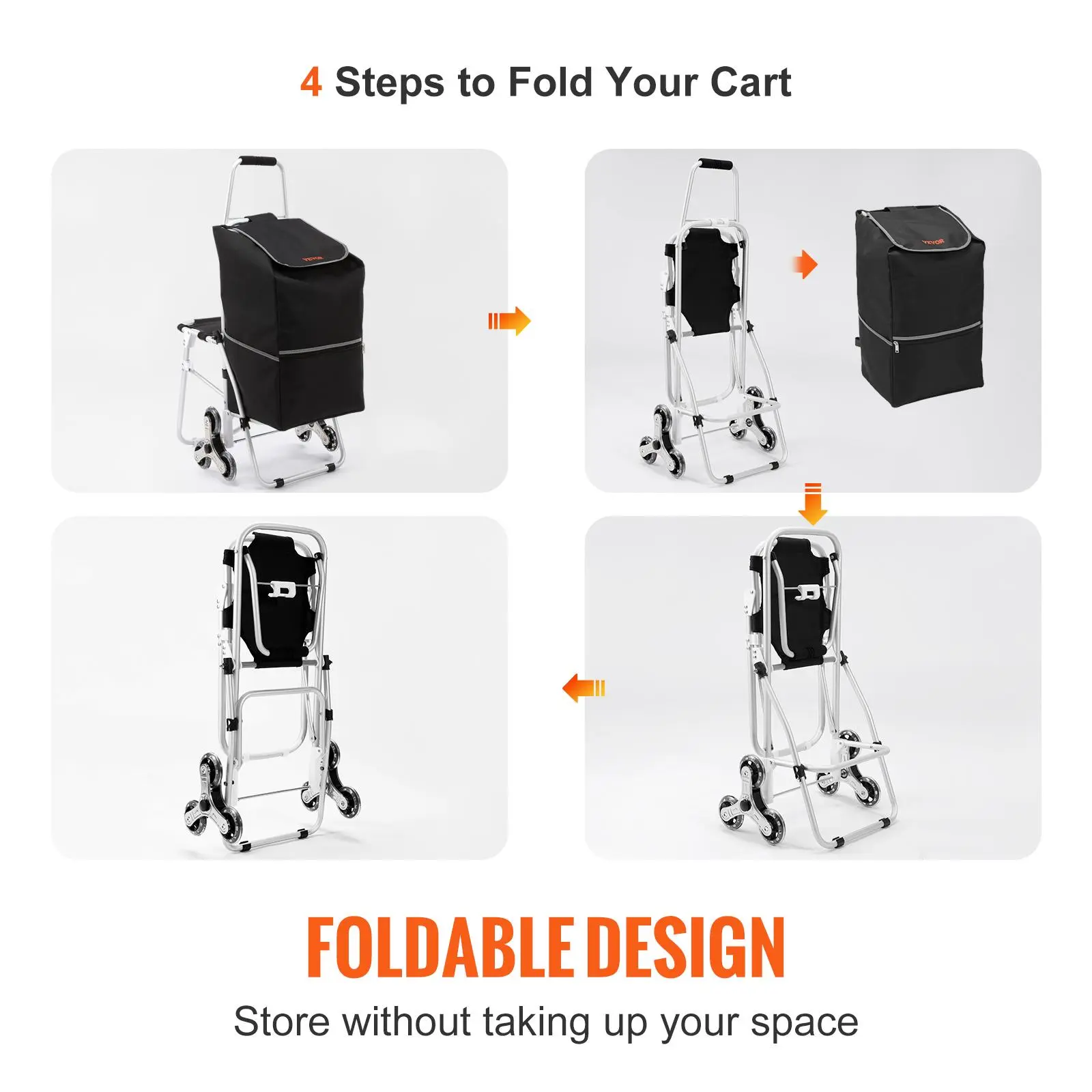 • Foldable to Store: Are you worried about space? Well, don't be! This stair climber cart can be easily folded for compact storage, saving more space. It is convenient to carry and transport for all your needs; the trolley can be unfolded whenever used. It is easy to store in the trunk of your car, under a bed, in a closet, storage room wall, or garage.