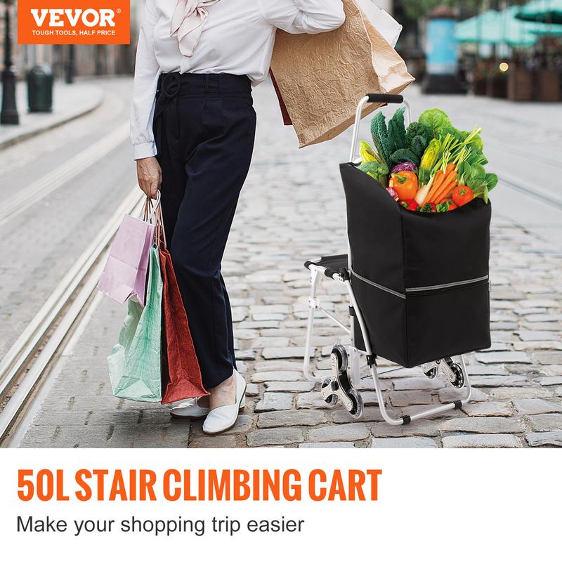 5. VEVOR Stair Climbing Cart, 165 lbs Static Load Capacity, Foldable Utility Cart with 50L Waterproof Bag & Seat, Rubber Tri-Wheels & Padded Handle, Multipurpose Stair Climber for Travel Shopping Office