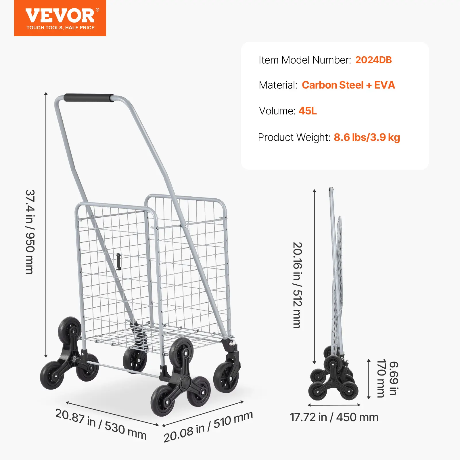 • Foldable for Easy Storage: No more clutter! This shopping cart stair climber folds up in seconds, transforming into a neat 44.09" x 20.87" x 9.06" package. Slide it under your bed, pop it in the trunk, or stash it in a closet, garage, or on a storage wall. Space-saving brilliance at its finest!