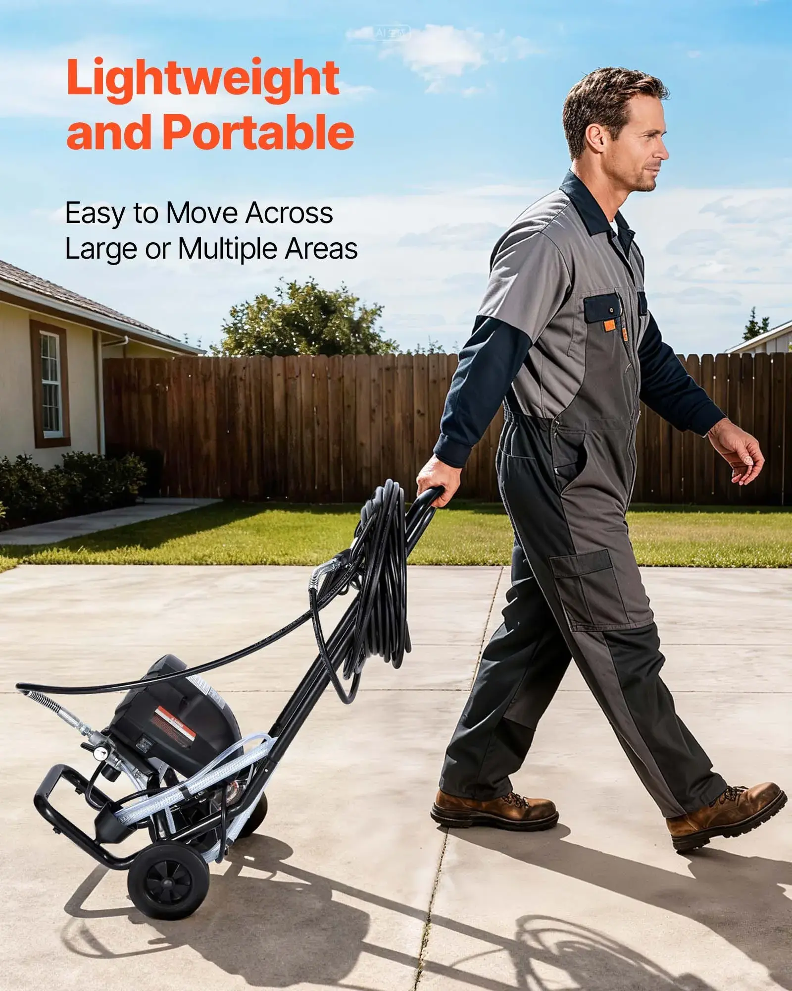 ·Convenient Design: The wheeled base of the airless sprayer ensures smooth mobility, while the pole reaches high and low surfaces, reducing the need to climb or bend. The flexible suction tube draws paint from 1 to 5-gallon buckets for versatile operation
