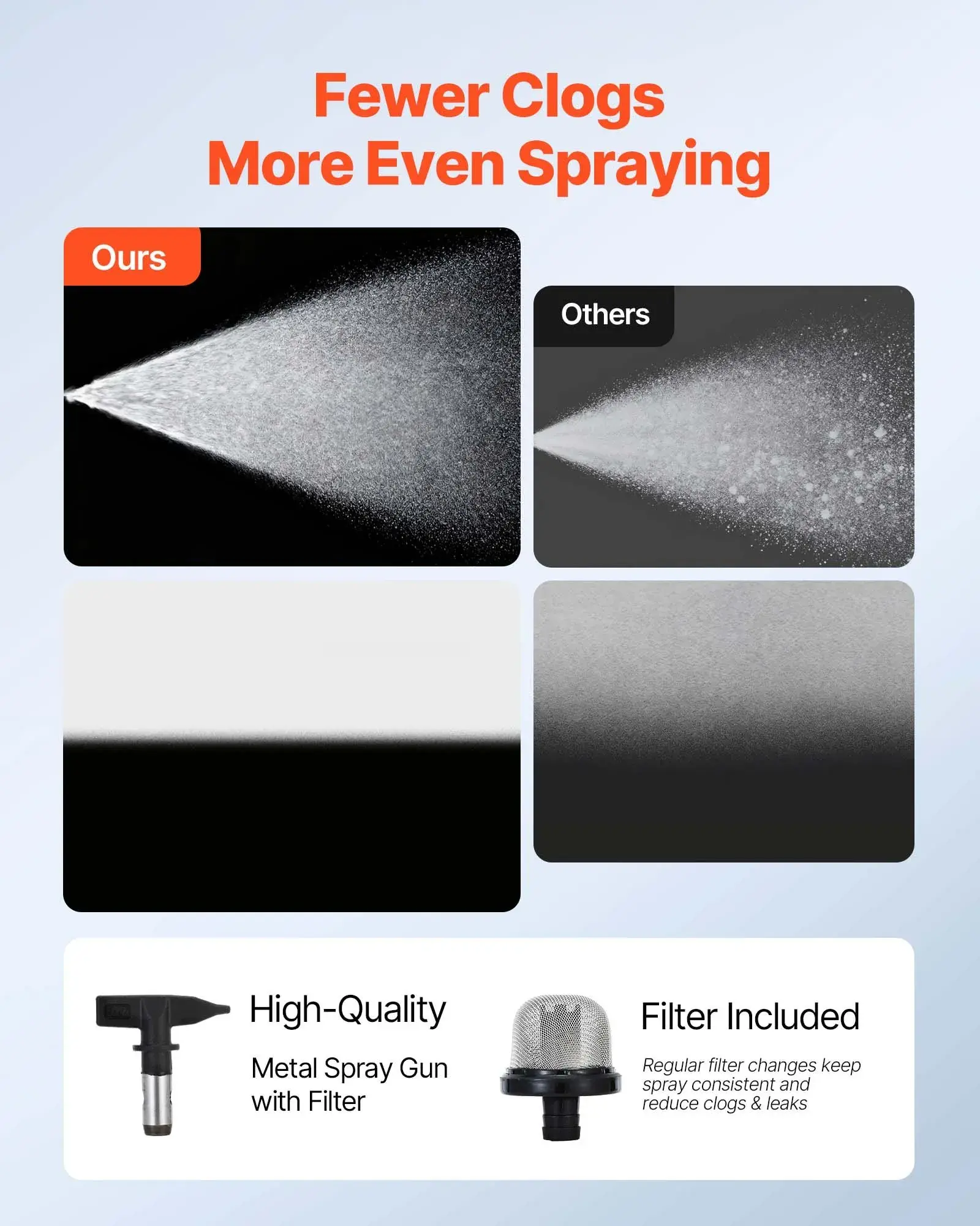·Ideal Coating Finish: Premium nozzle ensures precise control and minimizes overspray. Our airless paint sprayer includes a filter and seals to avoid clogging and leaks, delivering smooth, even coverage