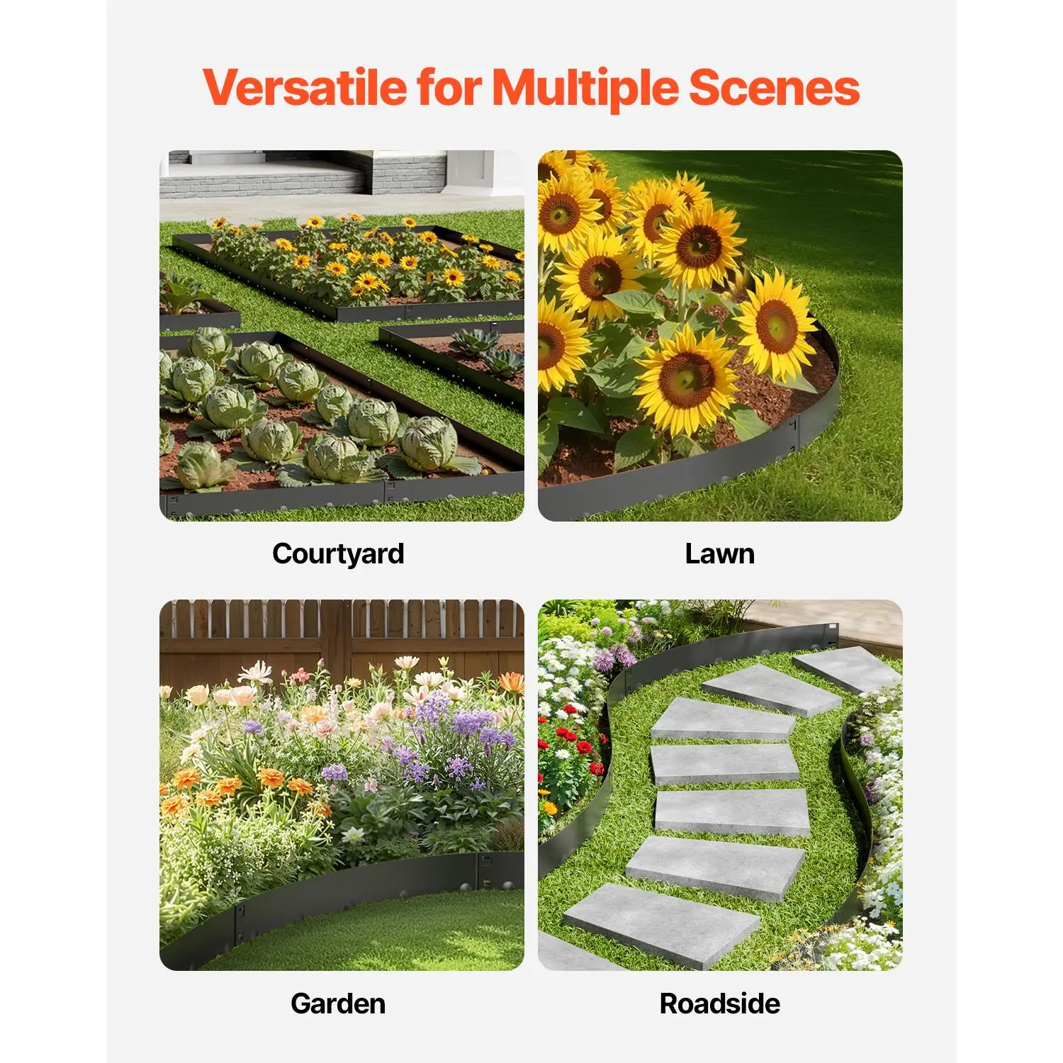 • Long-Lasting Galvanized Steel: Made from high-quality galvanized steel with a rust-resistant coating, this metal landscape edging built to resist fading, cracking, and rusting. It withstands all weather conditions, providing long-term durability for any outdoor environment.